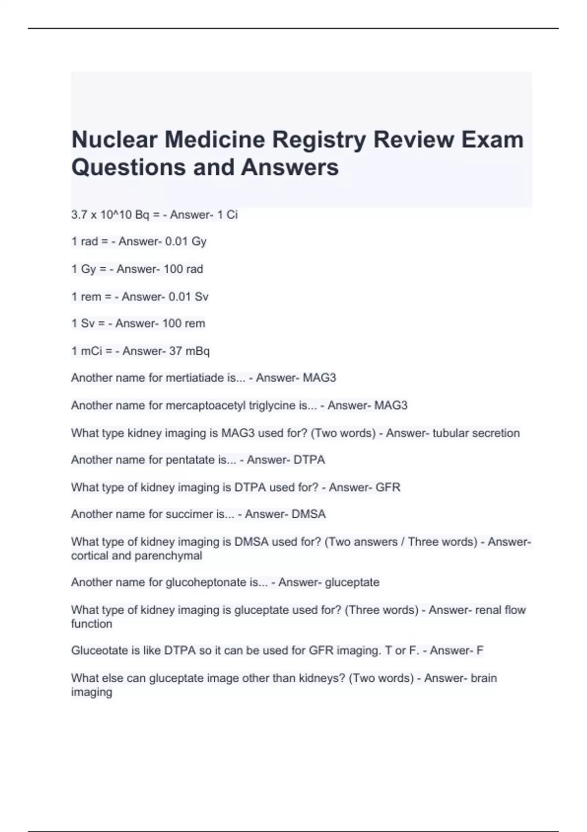 Nuclear Medicine Registry Review Exam Questions and Answers