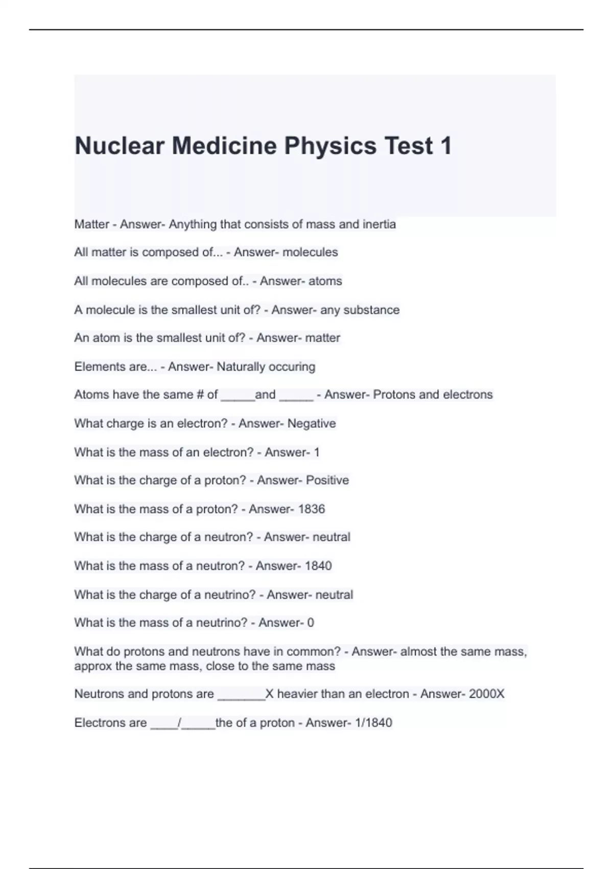 Nuclear Medicine Physics Test 1 Questions with correct Answers