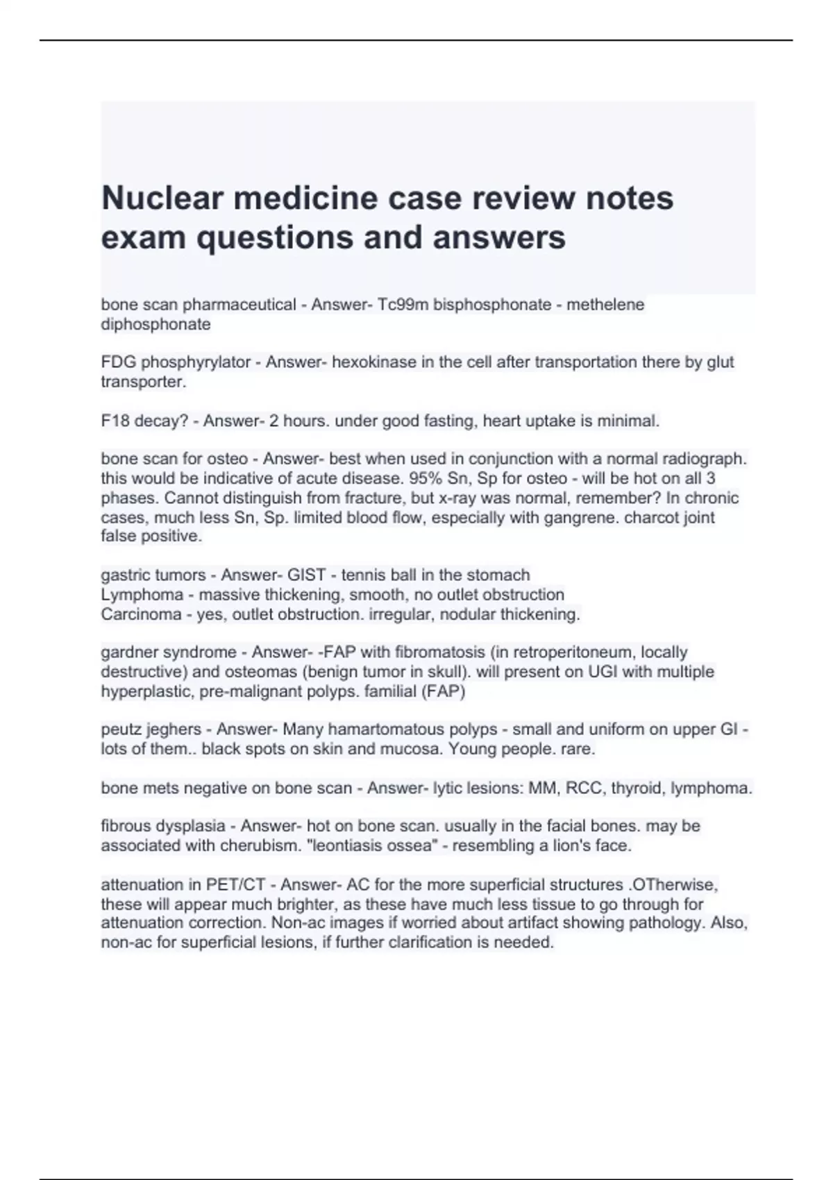 Nuclear medicine case review notes exam questions and answers