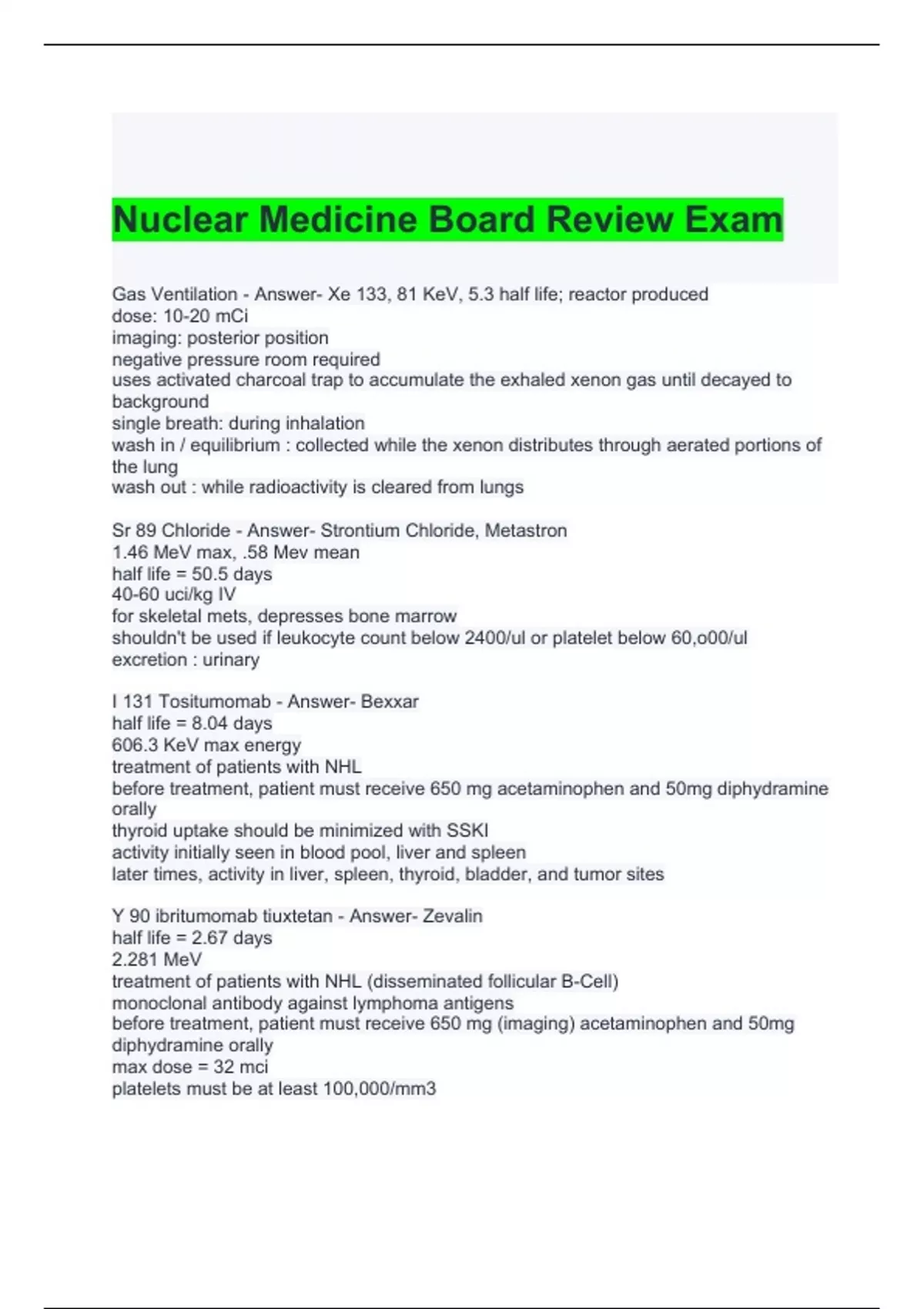 Nuclear Medicine Board Review Exam with 100% correct Answers