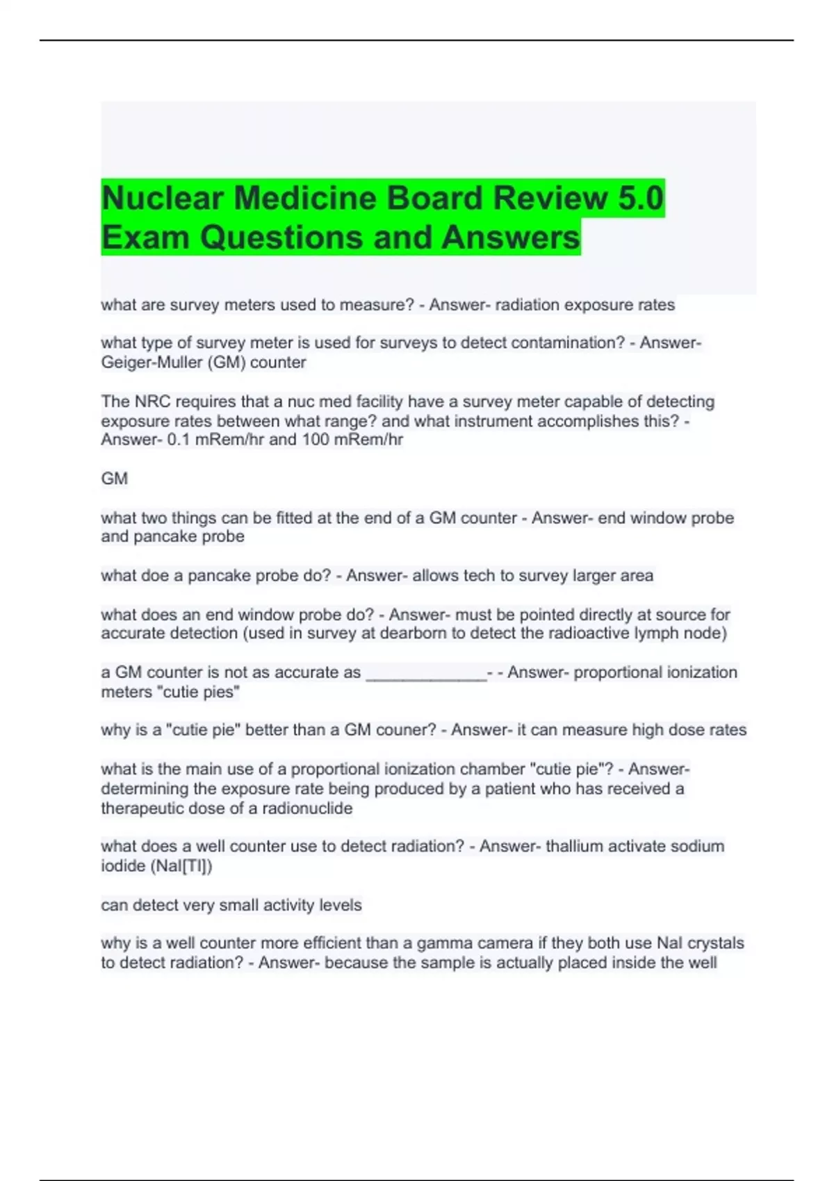 Nuclear Medicine Board Review 5.0 Exam Questions and Answers