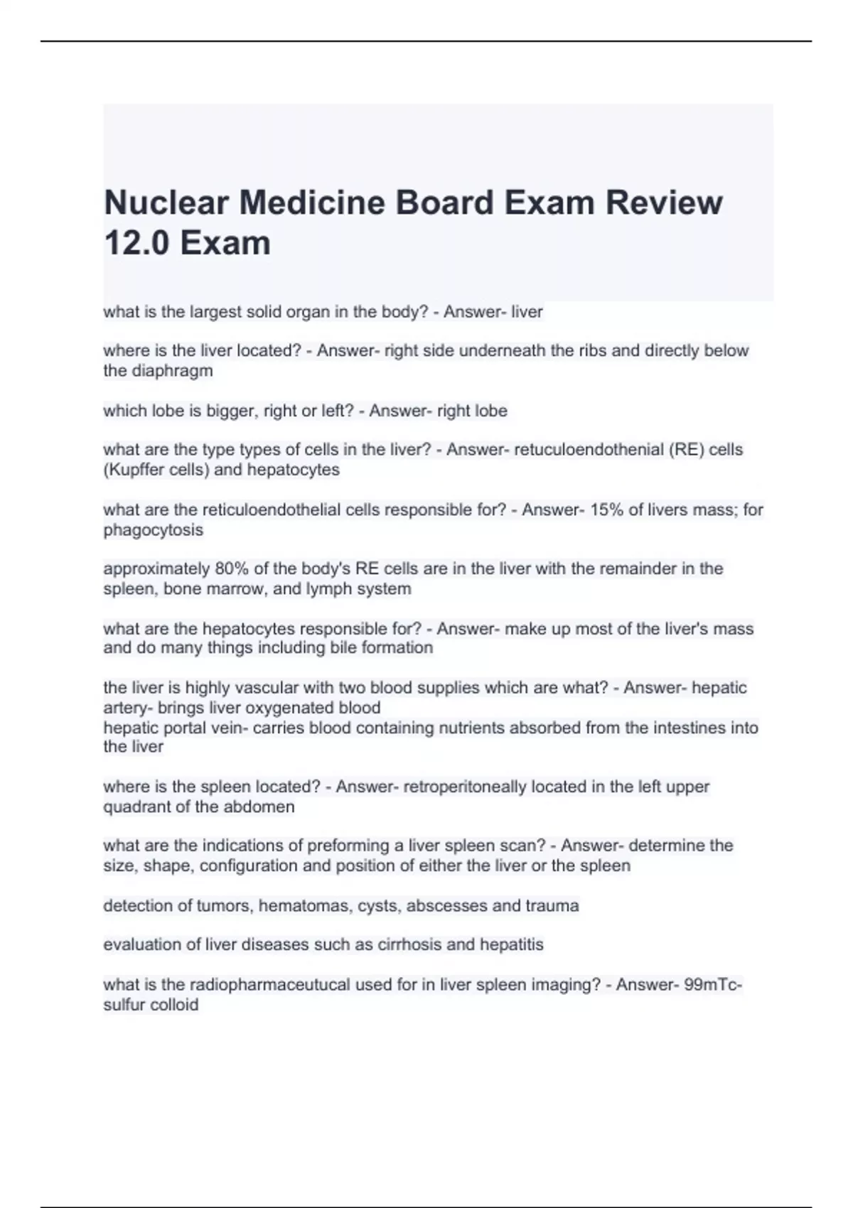Nuclear Medicine Board Exam Review 12.0 Exam Questions and Answers