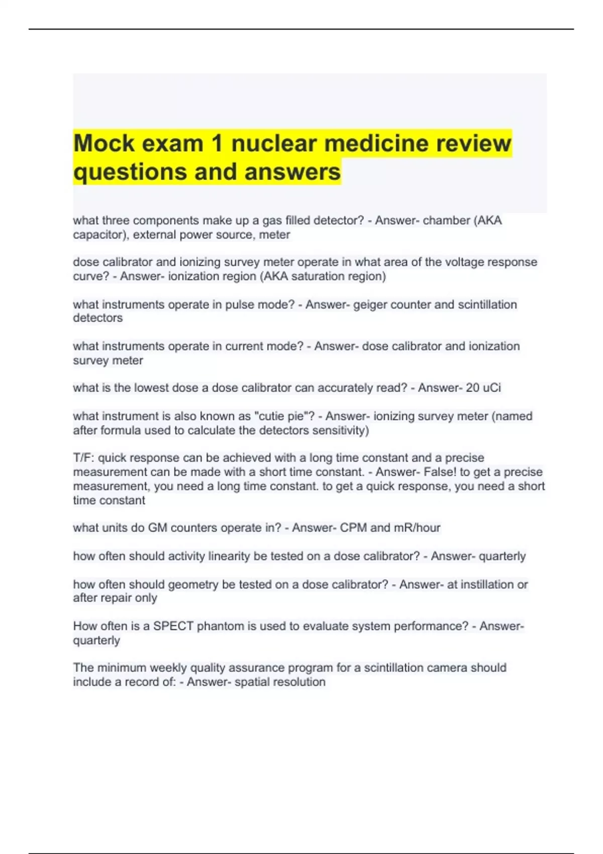 Mock exam 1 nuclear medicine review questions and answers 2024