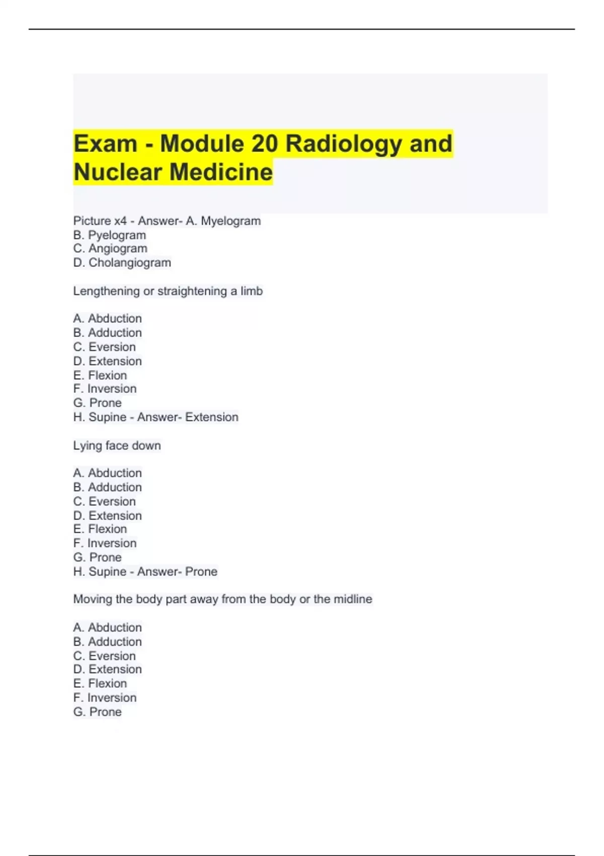Exam - Module 20 Radiology and Nuclear Medicine Questions with correct Answers