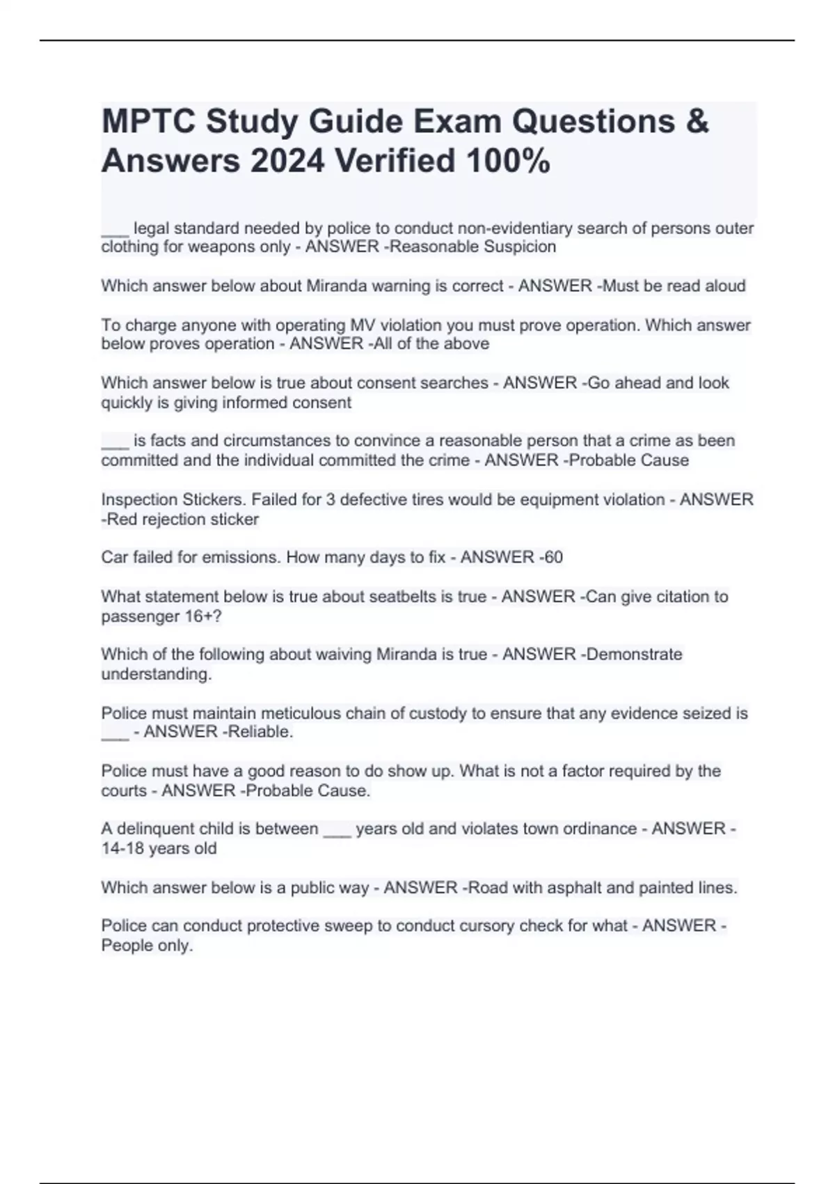 MPTC Study Guide Exam Questions & Answers 2024 Verified 100%