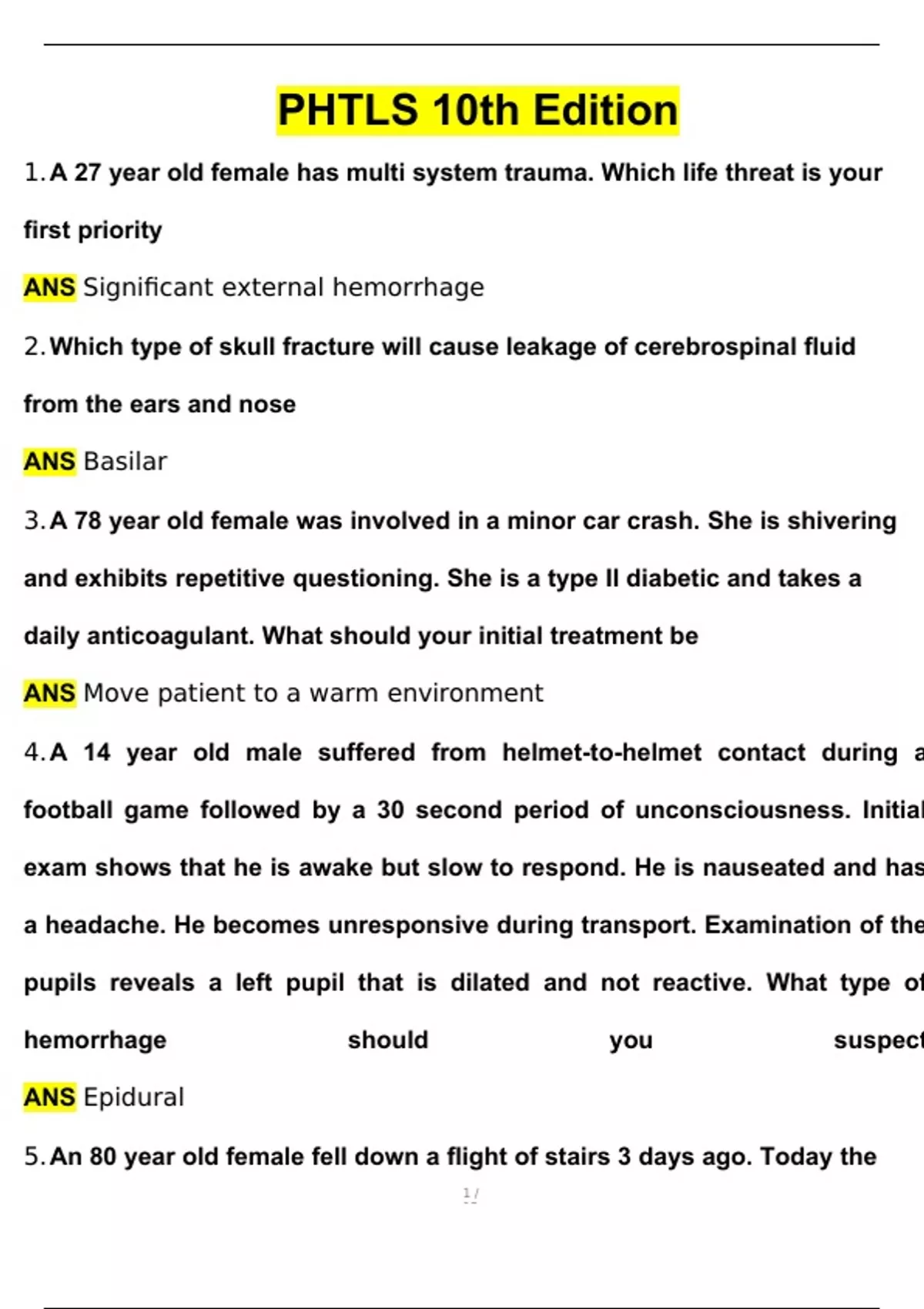 PHTLS 10th Edition Exam 2024 Update Questions & Answers | with 100% Correct Answers | Updated & Verified