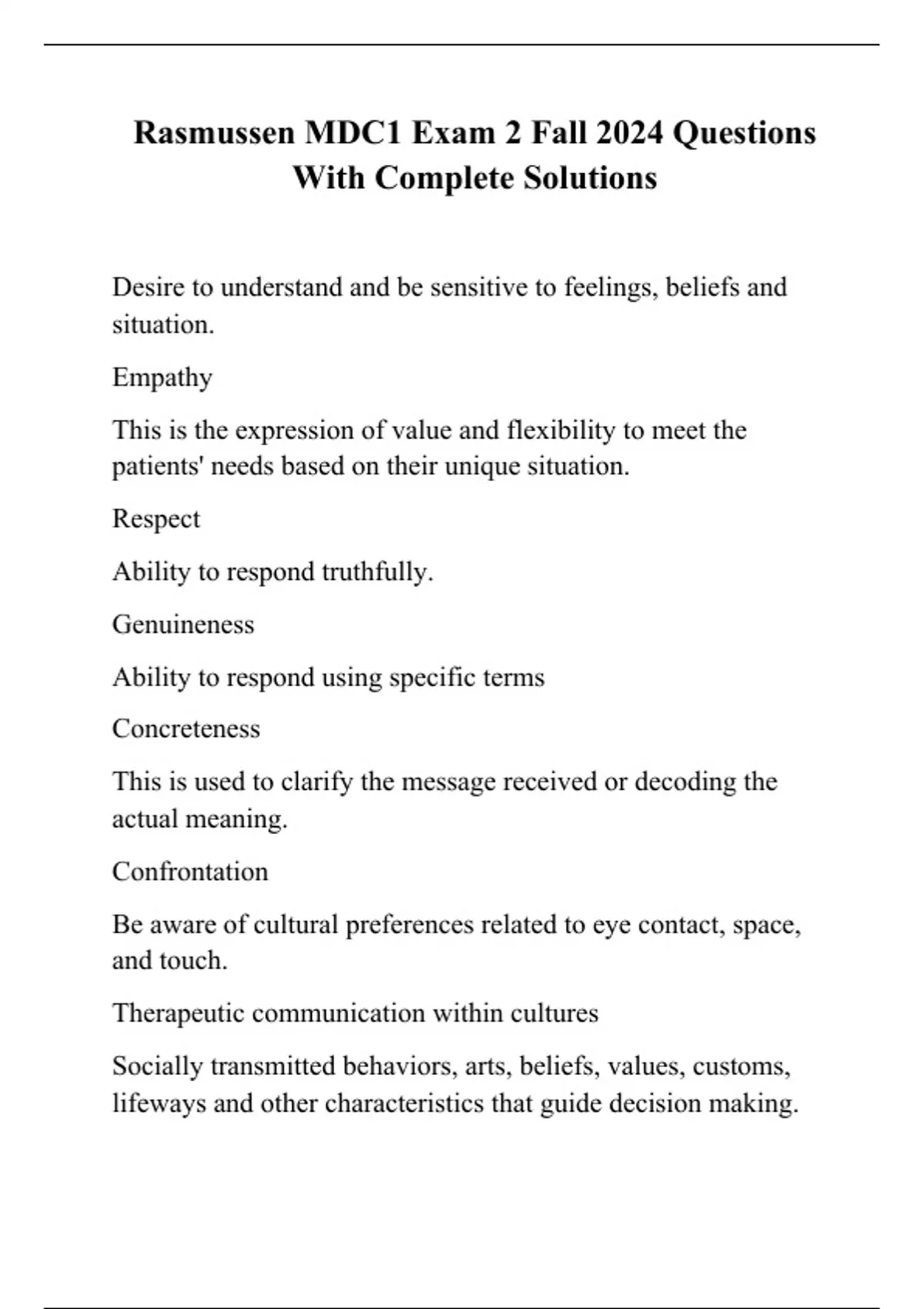 Rasmussen MDC1 Exam 2 Fall 2024 Questions With Complete Solutions