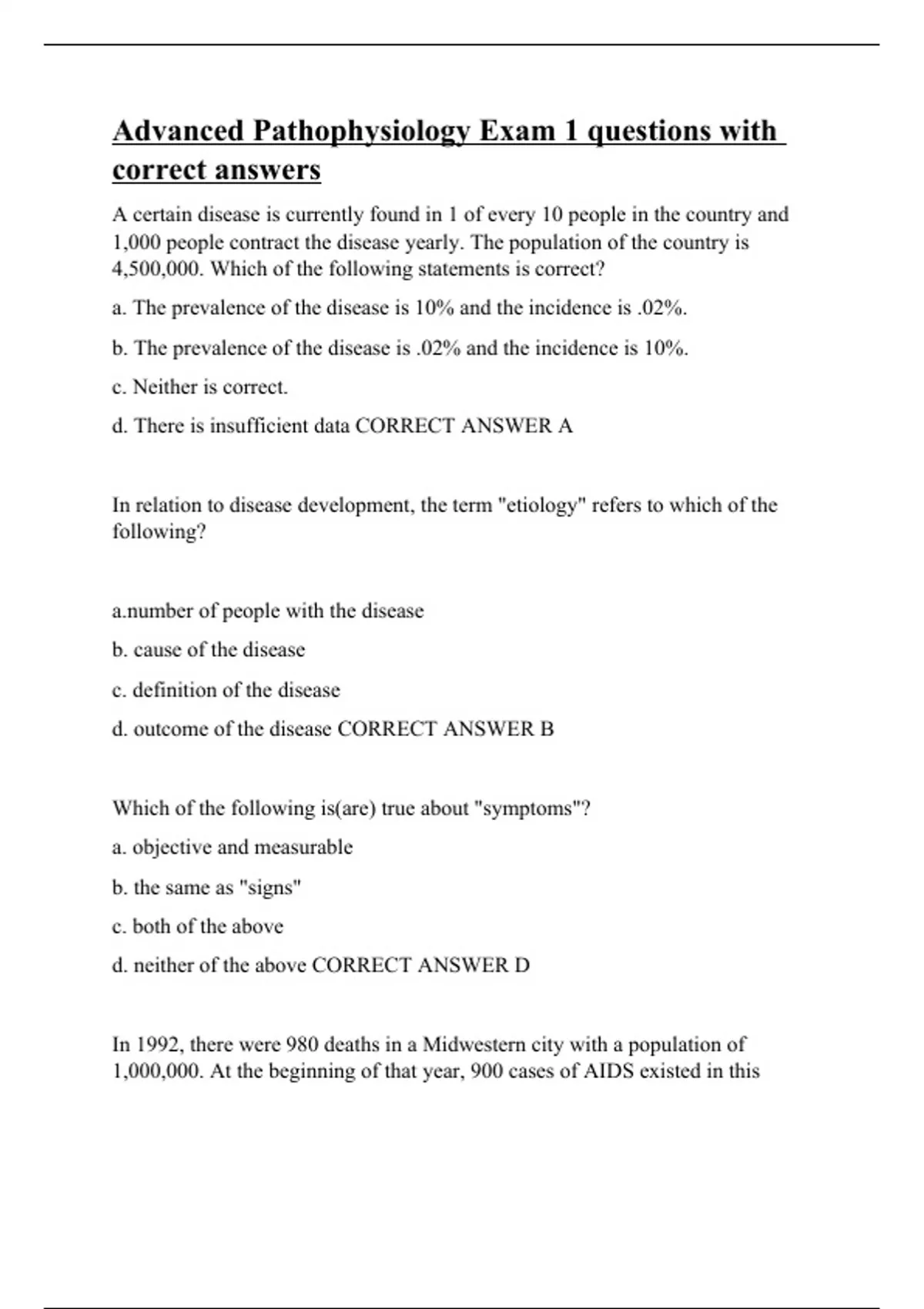 Advanced Pathophysiology Exam 1 questions with correct answers