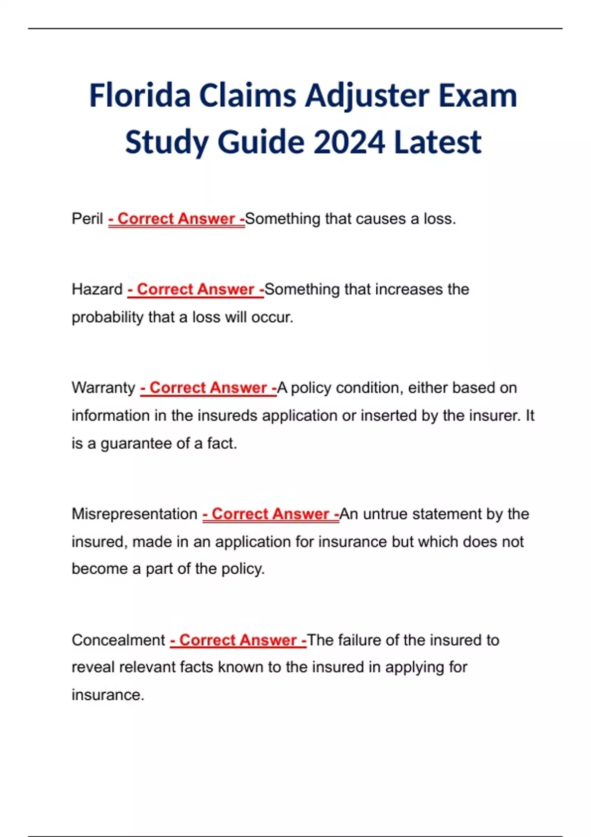 Florida Claims Adjuster Exam Study Guide 2024 Latest Florida Claims Adjuster Exam Study Guide 2024 Latest Florida Claims Adjuster Exam Study Guide 2024 Latest