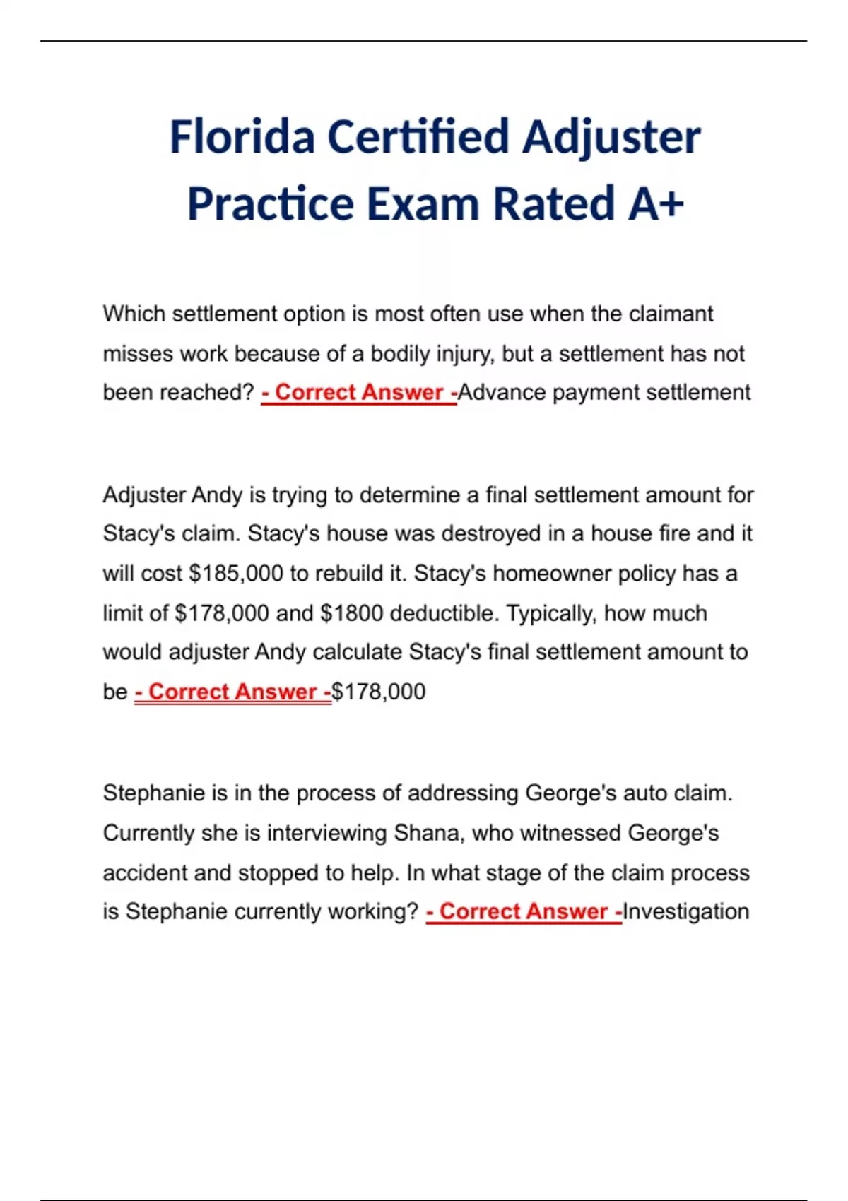 Florida Certified Adjuster Practice Exam Rated A+ Florida Certified Adjuster Practice Exam Rated A+ Florida Certified Adjuster Practice Exam Rated A+