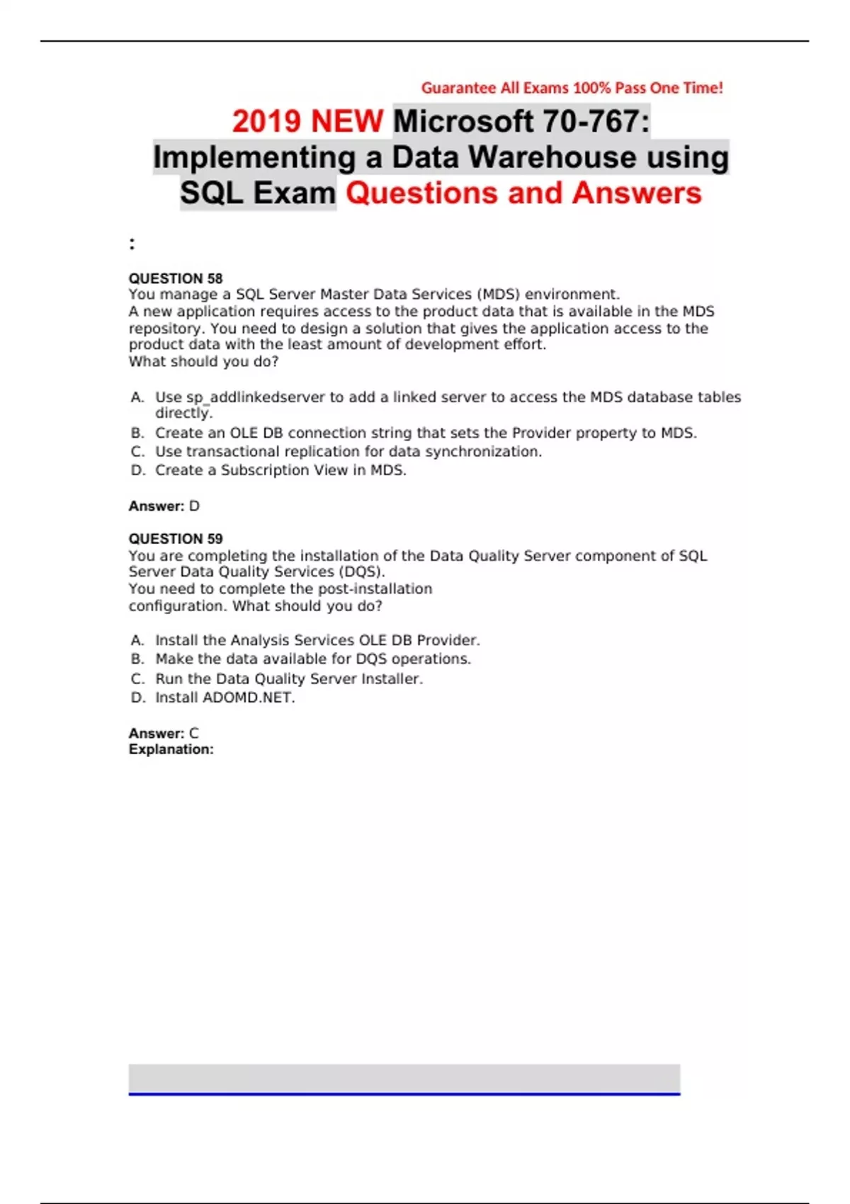 2019 NEW Microsoft 70-767: