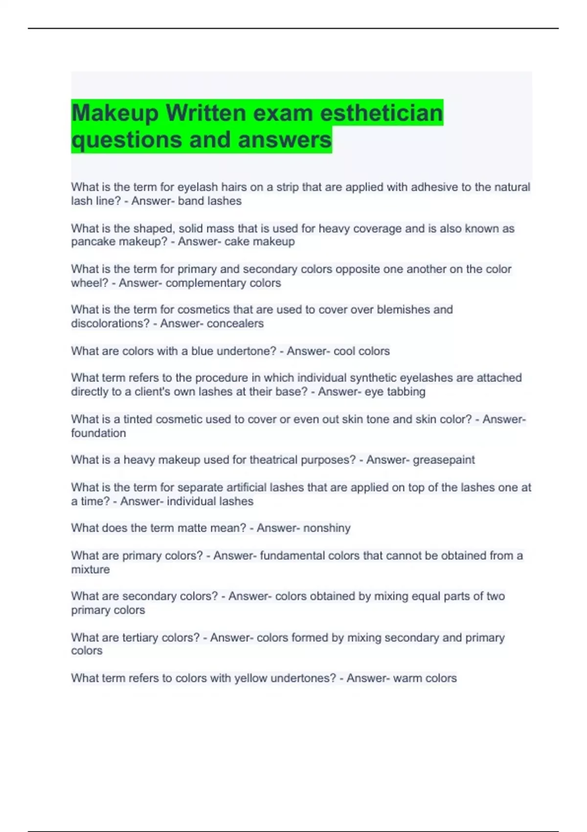 Makeup Written exam esthetician questions and answers 100% correct