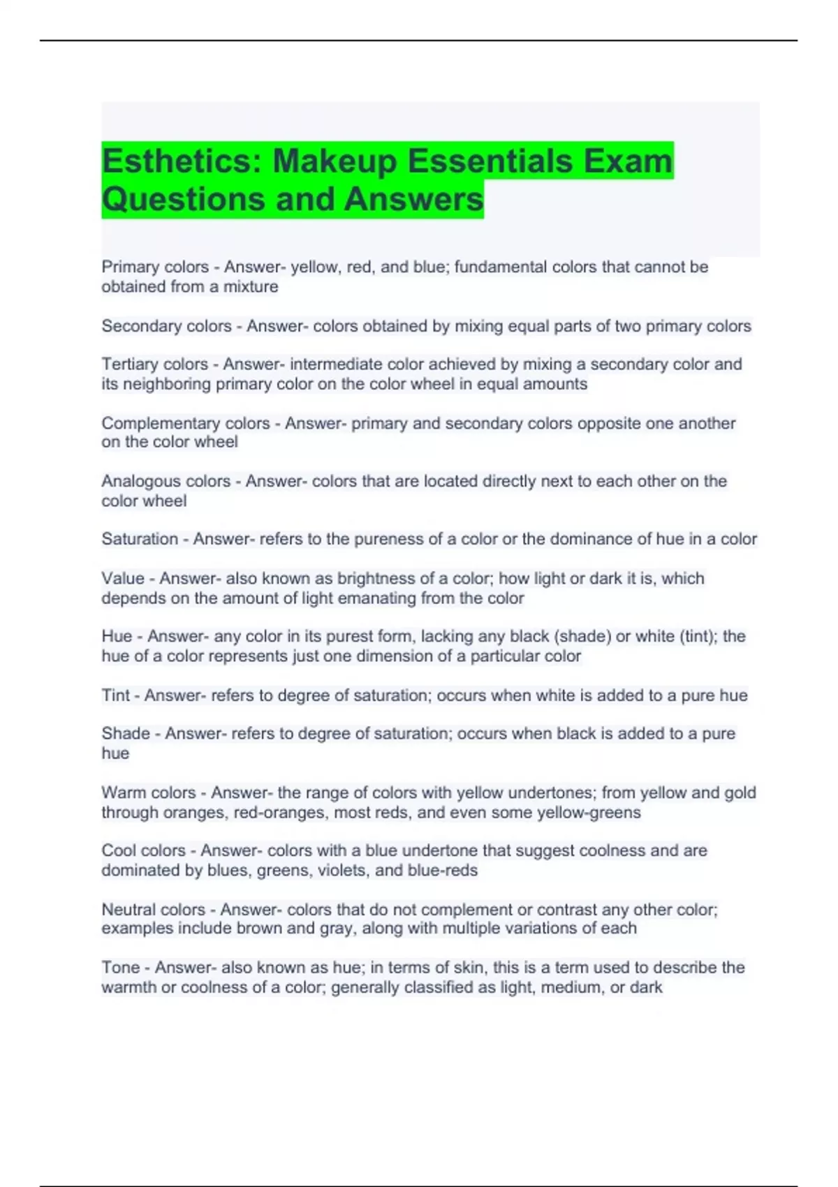 Esthetics Makeup Essentials Exam Questions and Answers 100% correct