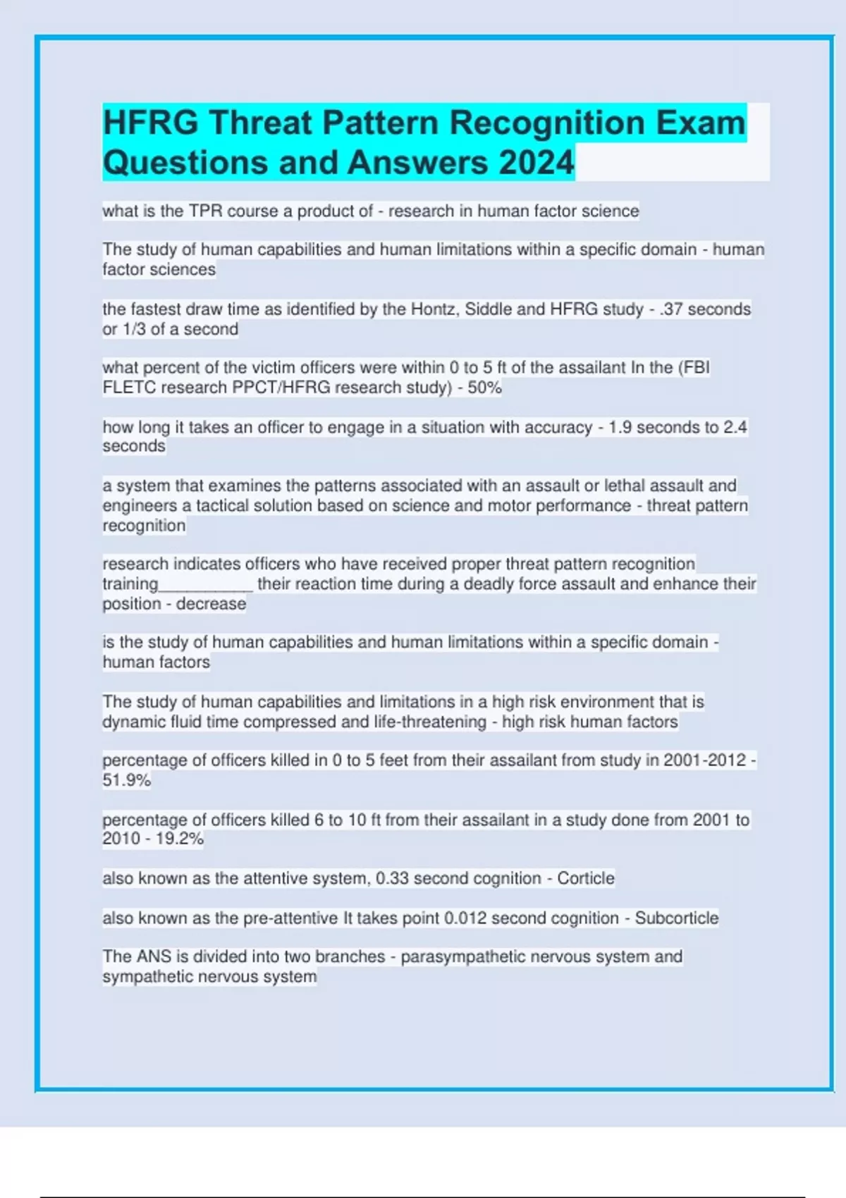 HFRG Threat Pattern Recognition Exam Questions and Answers 2024