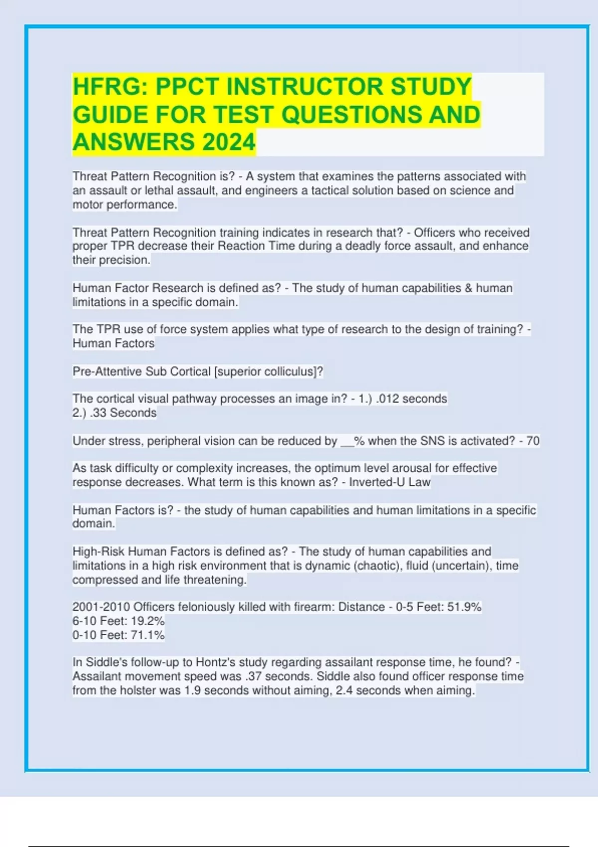 HFRG: PPCT INSTRUCTOR STUDY GUIDE FOR TEST QUESTIONS AND ANSWERS 2024