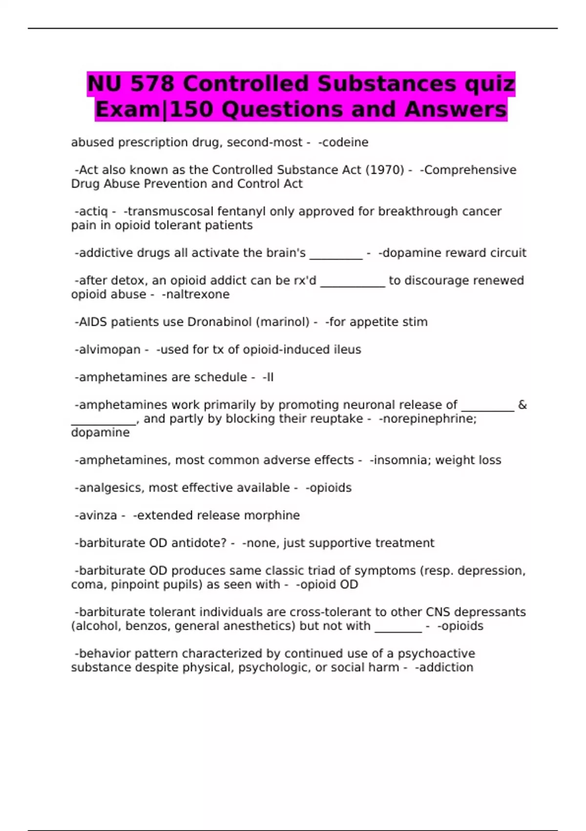NU 578 Controlled Substances quiz Exam|150 Questions and Answers