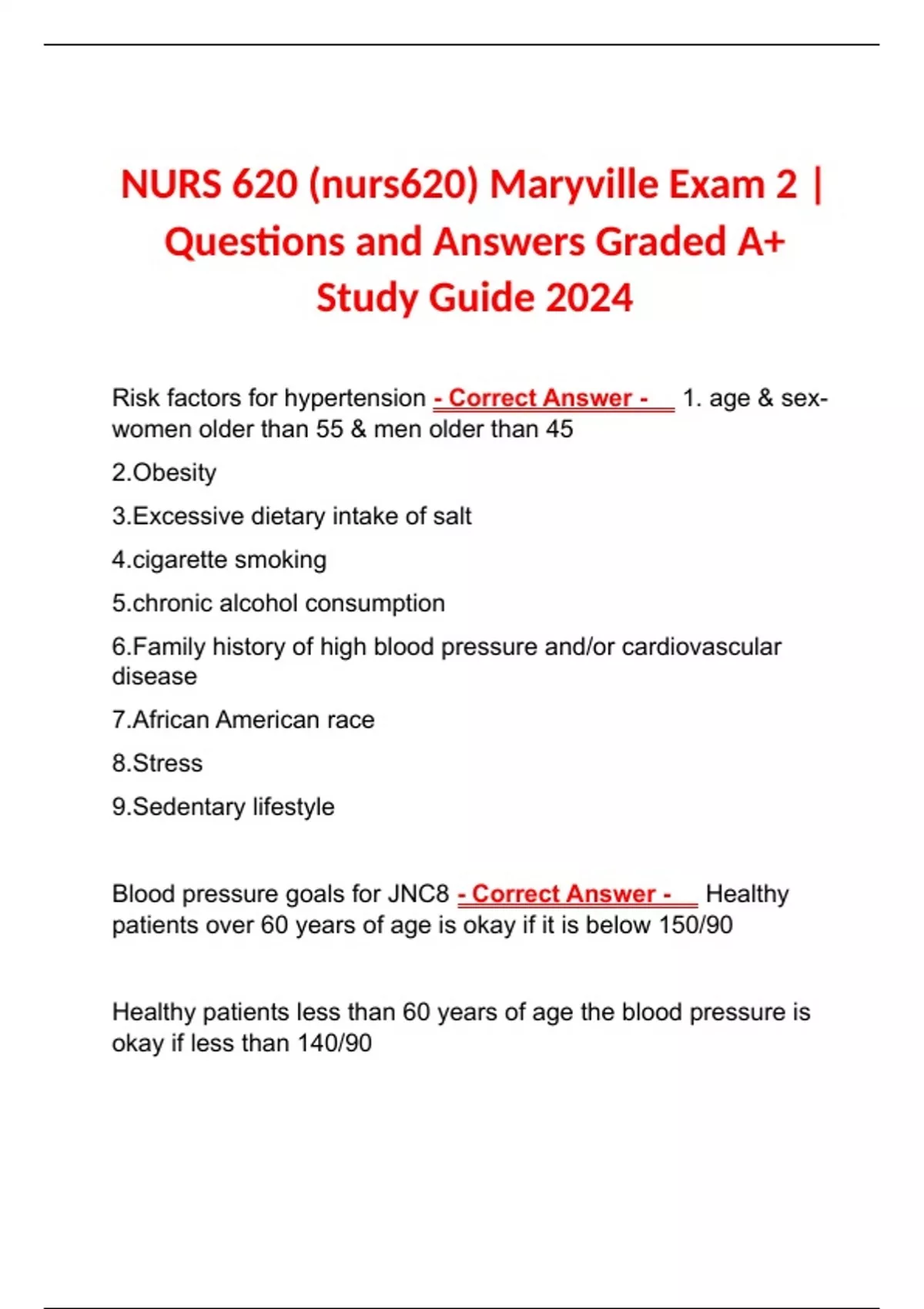 NURS 620 (nurs620) Maryville Exam 2 | Questions and Answers Graded A+ Study Guide 2024