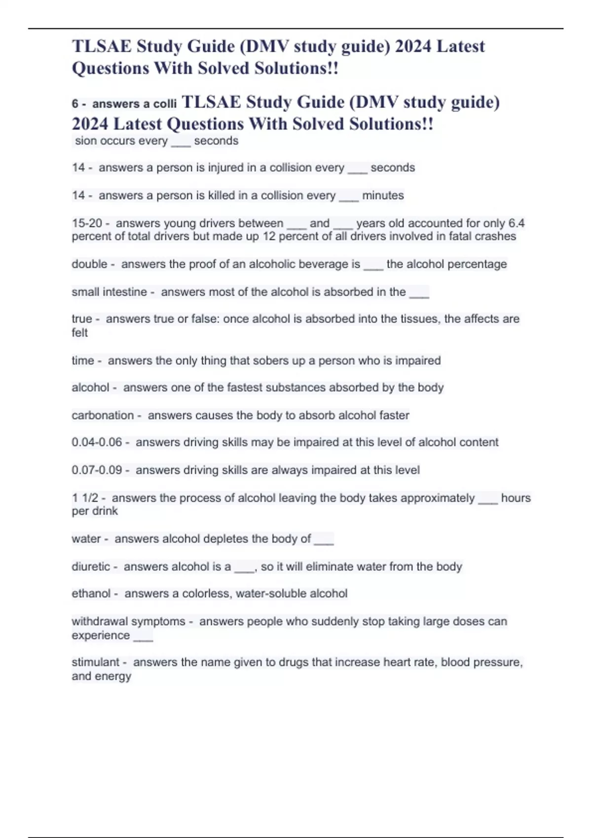 TLSAE Study Guide (DMV study guide) 2024 Latest Questions With Solved Solutions!!