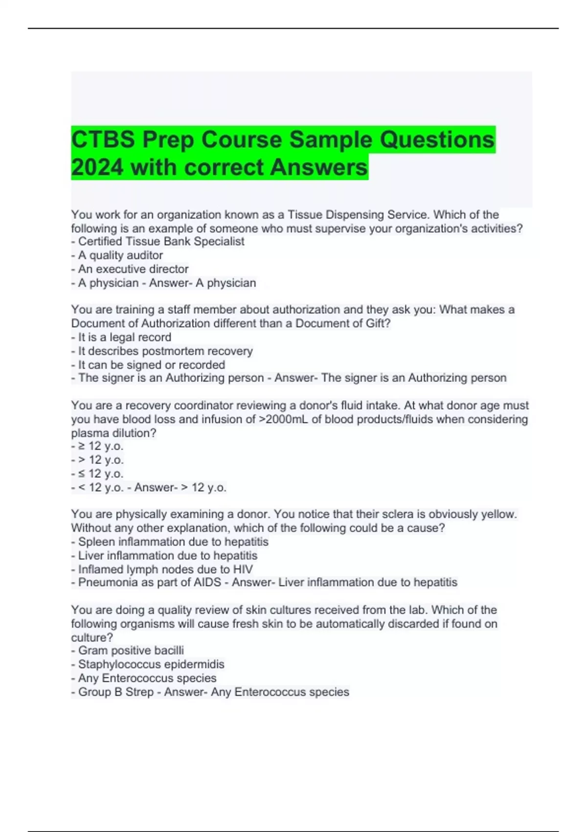 CTBS Prep Course Sample Questions 2024 with correct Answers