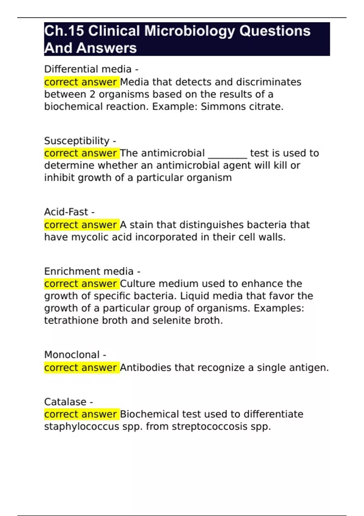 Ch.15 Clinical Microbiology Questions And Answers