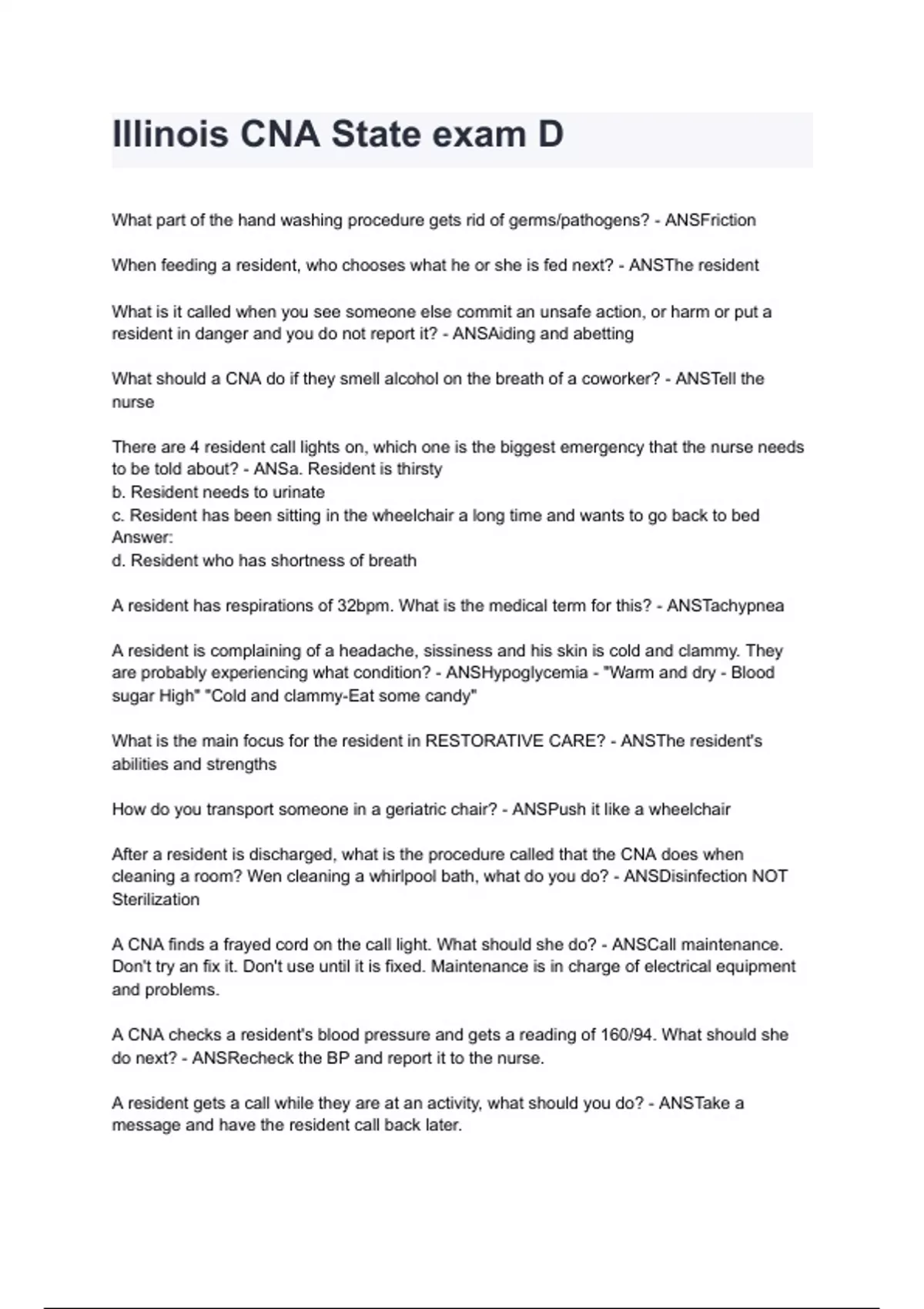 Illinois CNA State exam D NEWEST 2026/2027 ACTUAL EXAM COMPLETE QUESTIONS AND CORRECT DETAILED ANSWERS (VERIFIED ANSWERS) |ALREADY GRADED A+||BRAND NEW!!