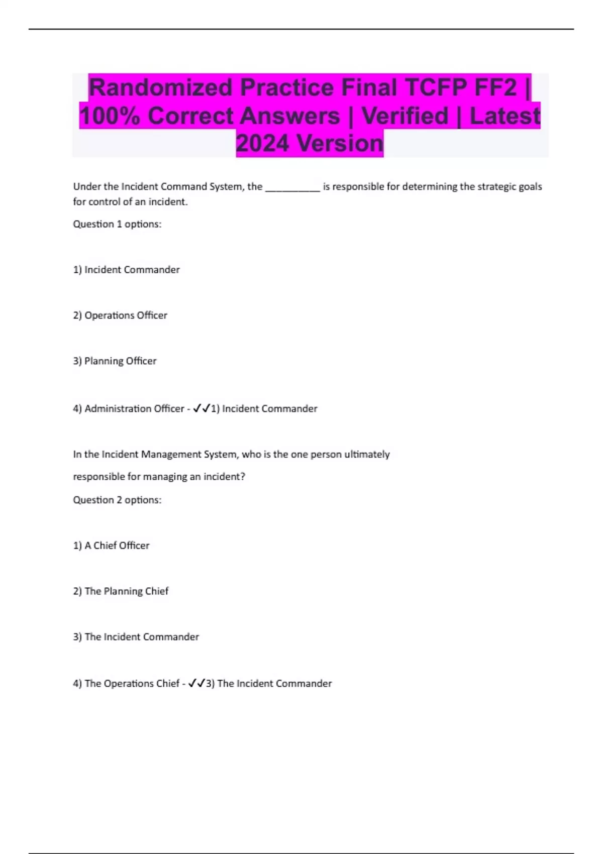 Randomized Practice Final TCFP FF2 | 100% Correct Answers | Verified | Latest 2024 Version
