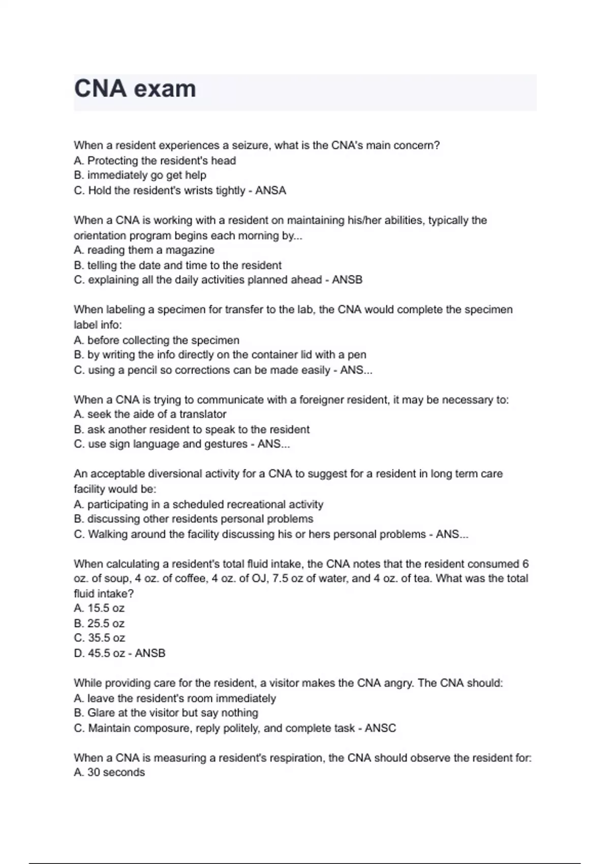 When calculating a resident's total fluid intake, the CNA notes that the resident consumed 6