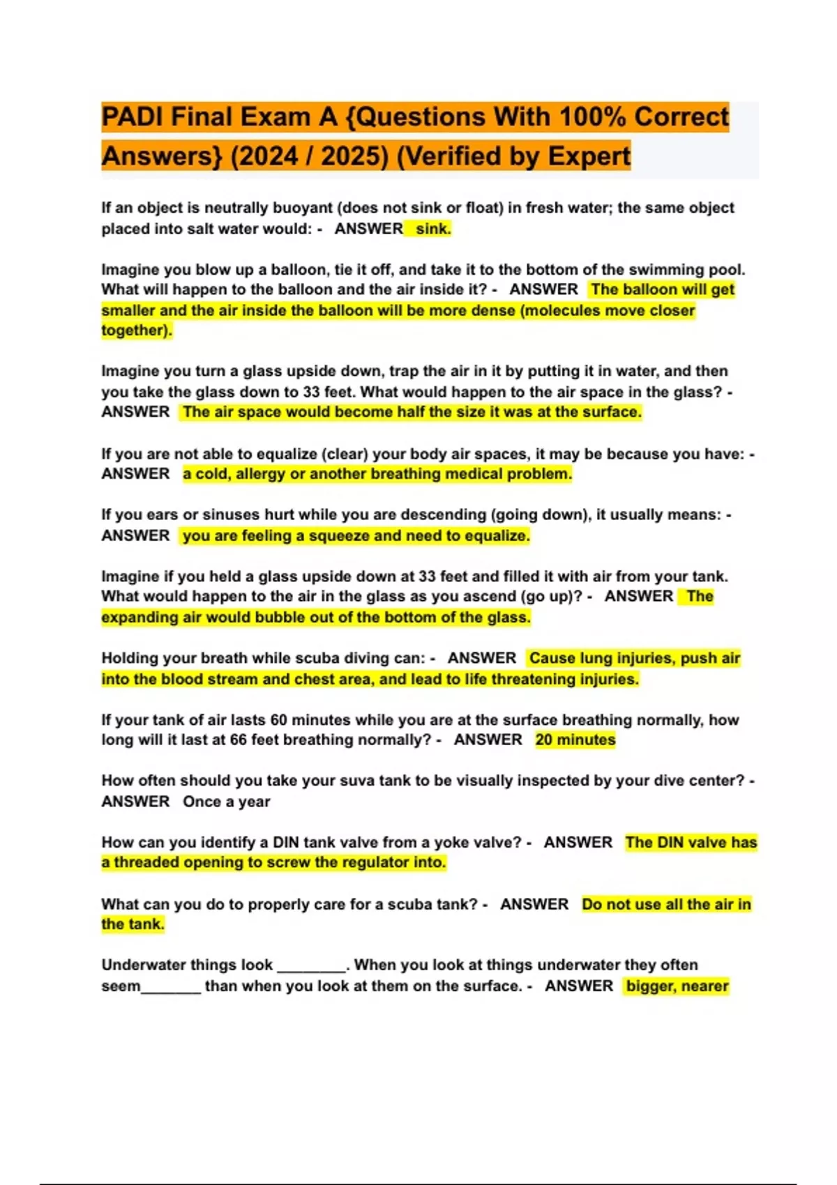 PADI Final Exam A {Questions With 100% Correct Answers} (2024 / 2025) (Verified by Expert