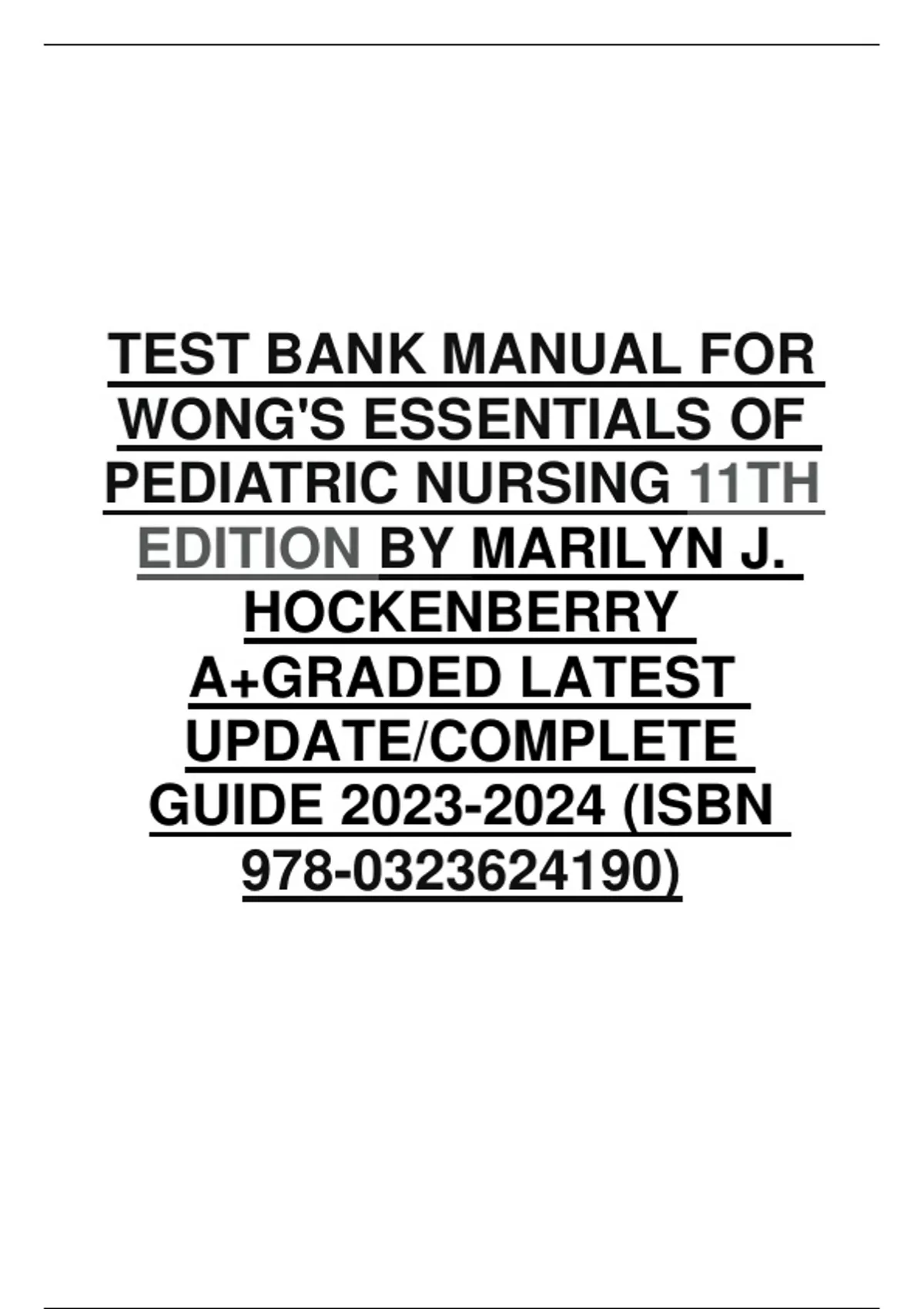 TEST BANK MANUAL FOR WONG'S ESSENTIALS OF PEDIATRIC NURSING 11TH EDITION BY MARILYN J. HOCKENBERRY A+GRADED LATEST UPDATE/COMPLETE GUIDE (ISBN 978-0323624190