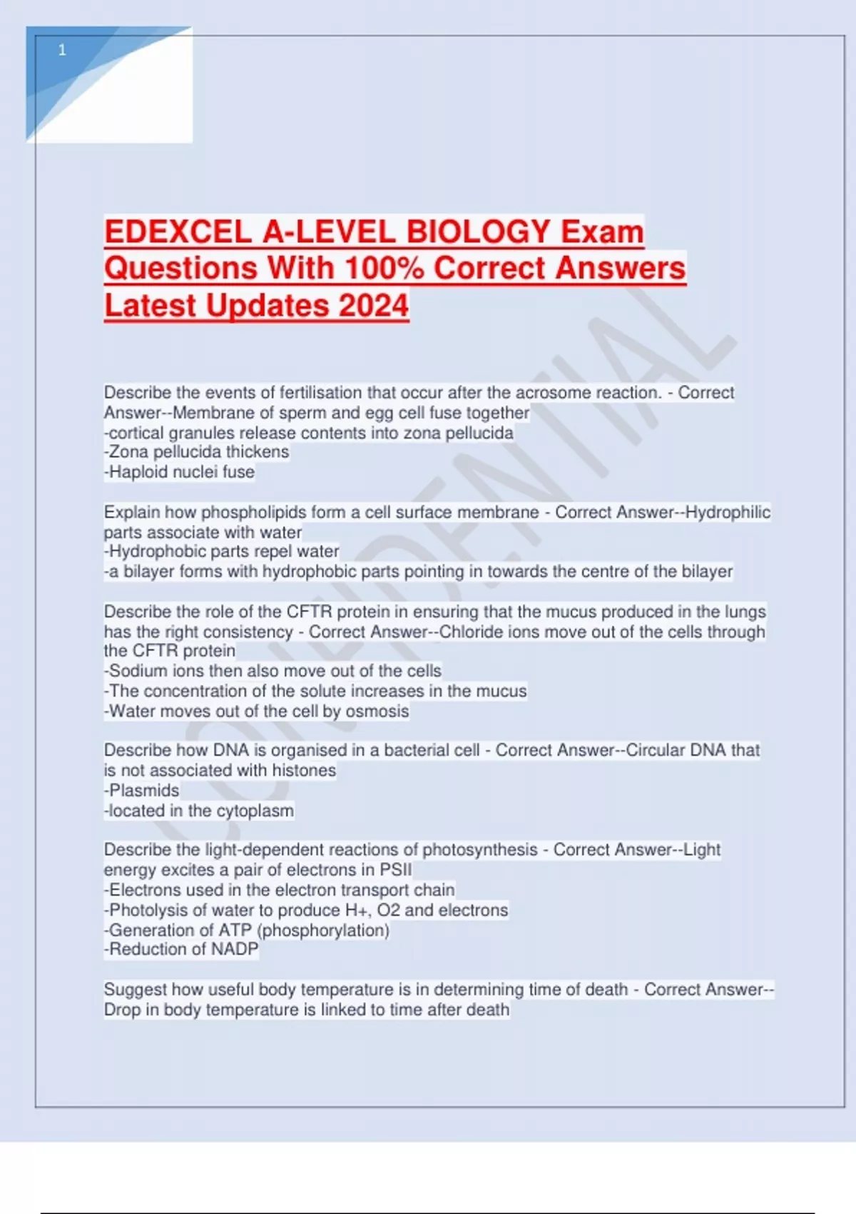 EDEXCEL A-LEVEL BIOLOGY Exam Questions With 100% Correct Answers Latest Updates 2024