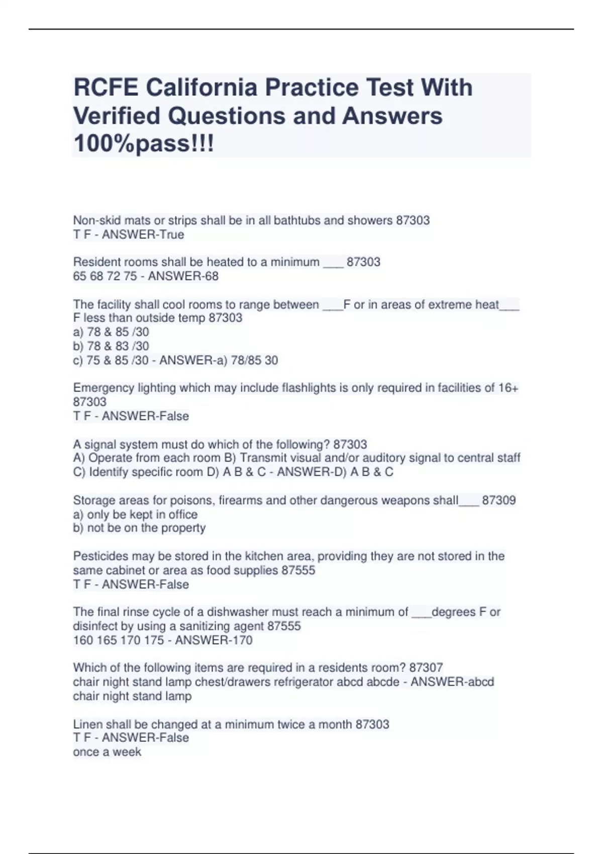 RCFE California Practice Test With Verified Questions and Answers 100%pass!!!