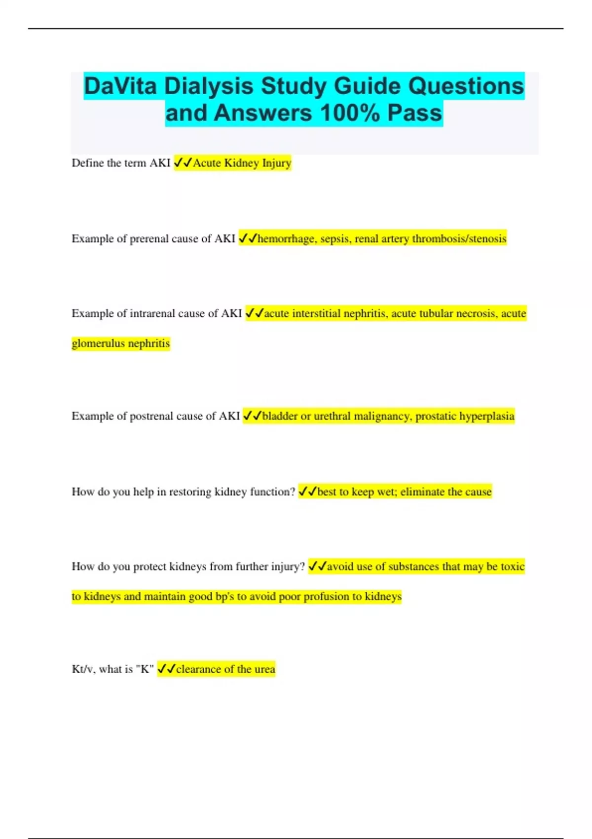 DaVita Dialysis Study Guide Questions and Answers 100% Pass