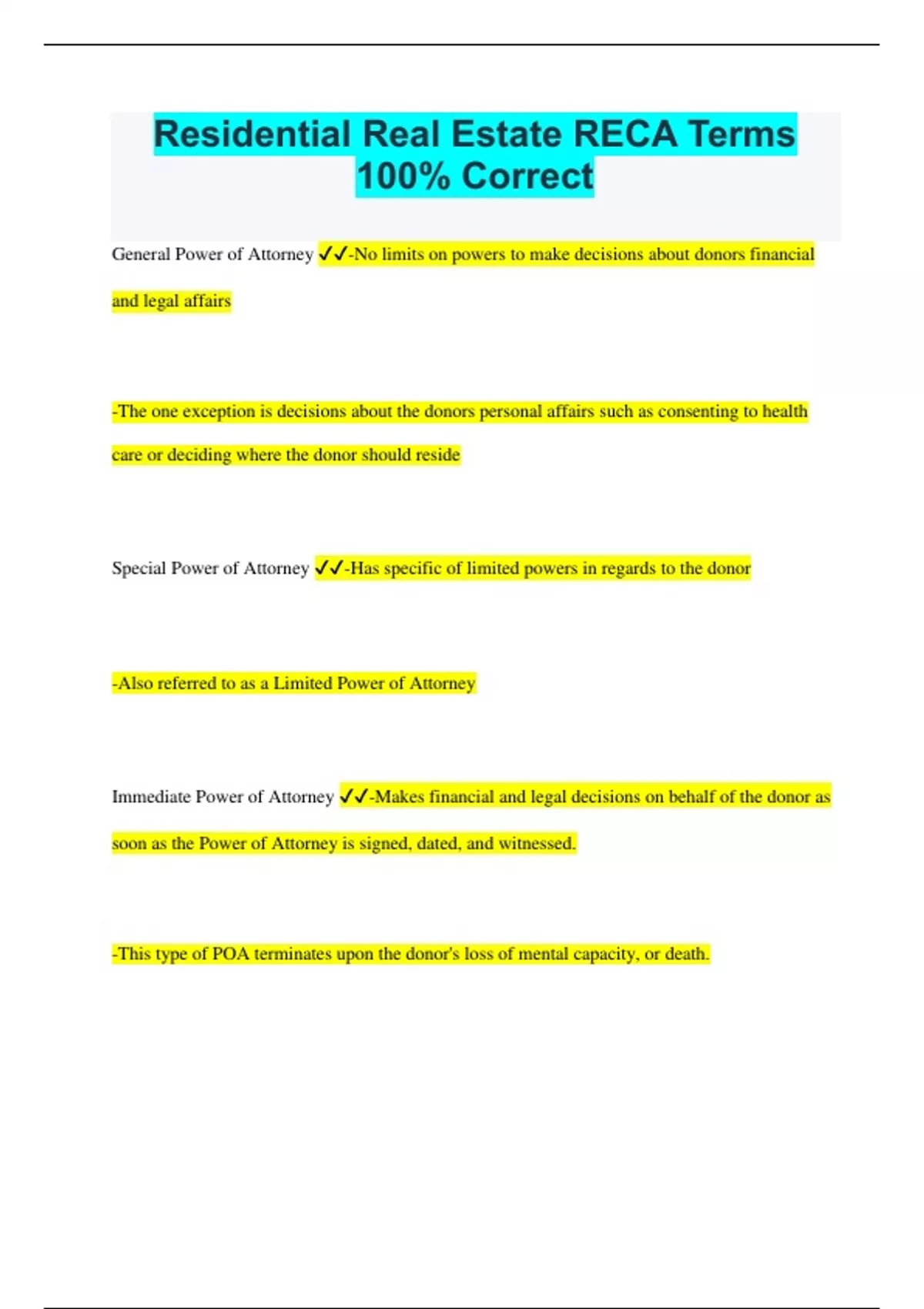 Residential Real Estate RECA Terms 100% Correct