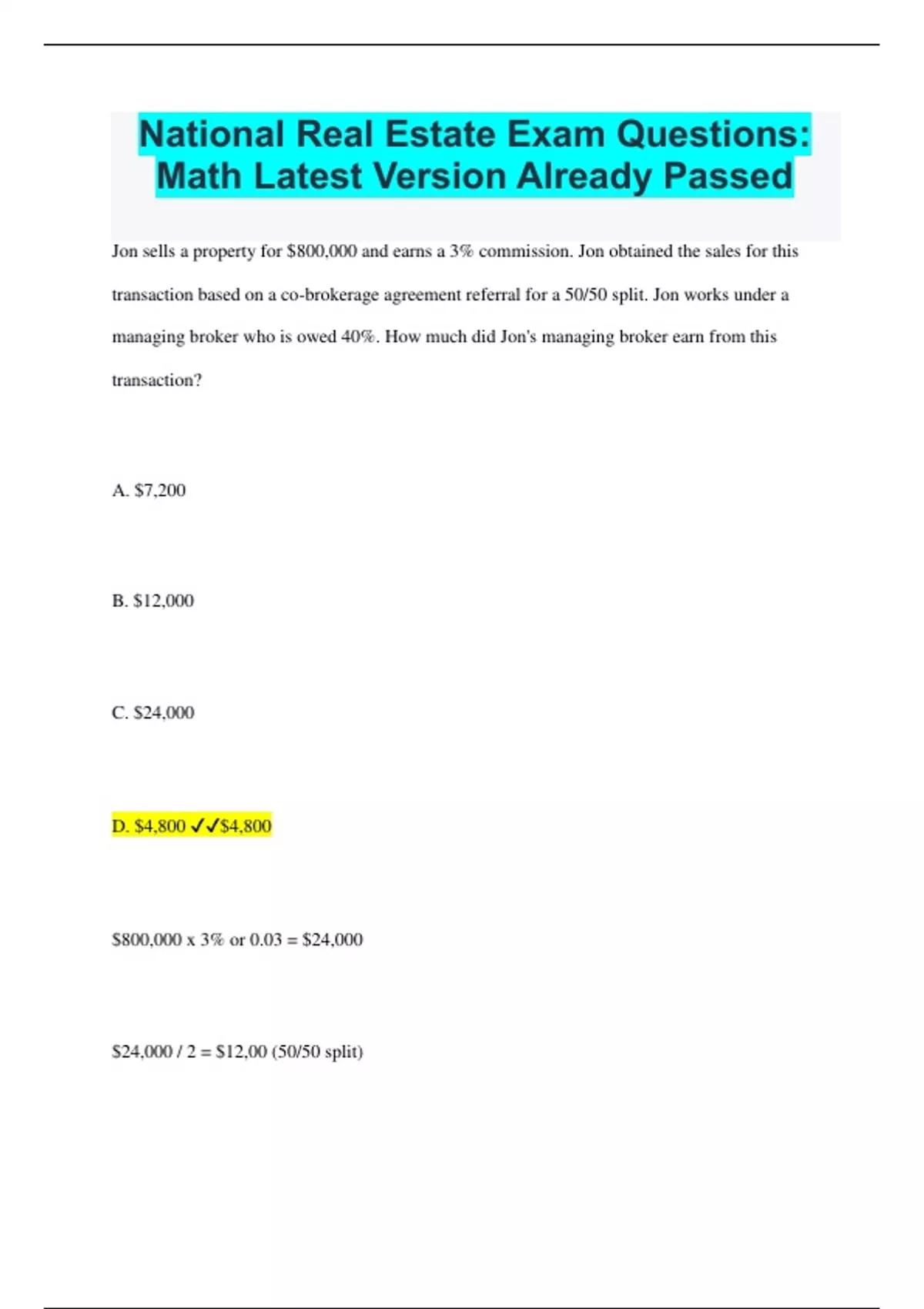 National Real Estate Exam Questions: Math Latest Version Already Passed