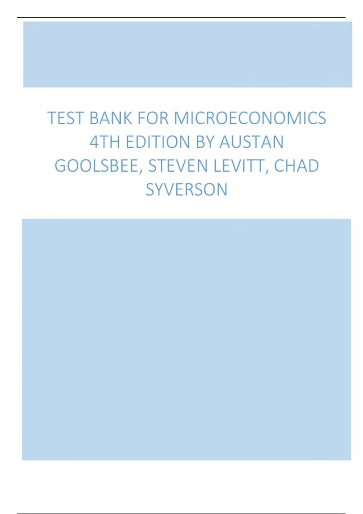 Test Bank for Microeconomics 4th Edition By Austan Goolsbee, Steven Levitt, Chad Syverson