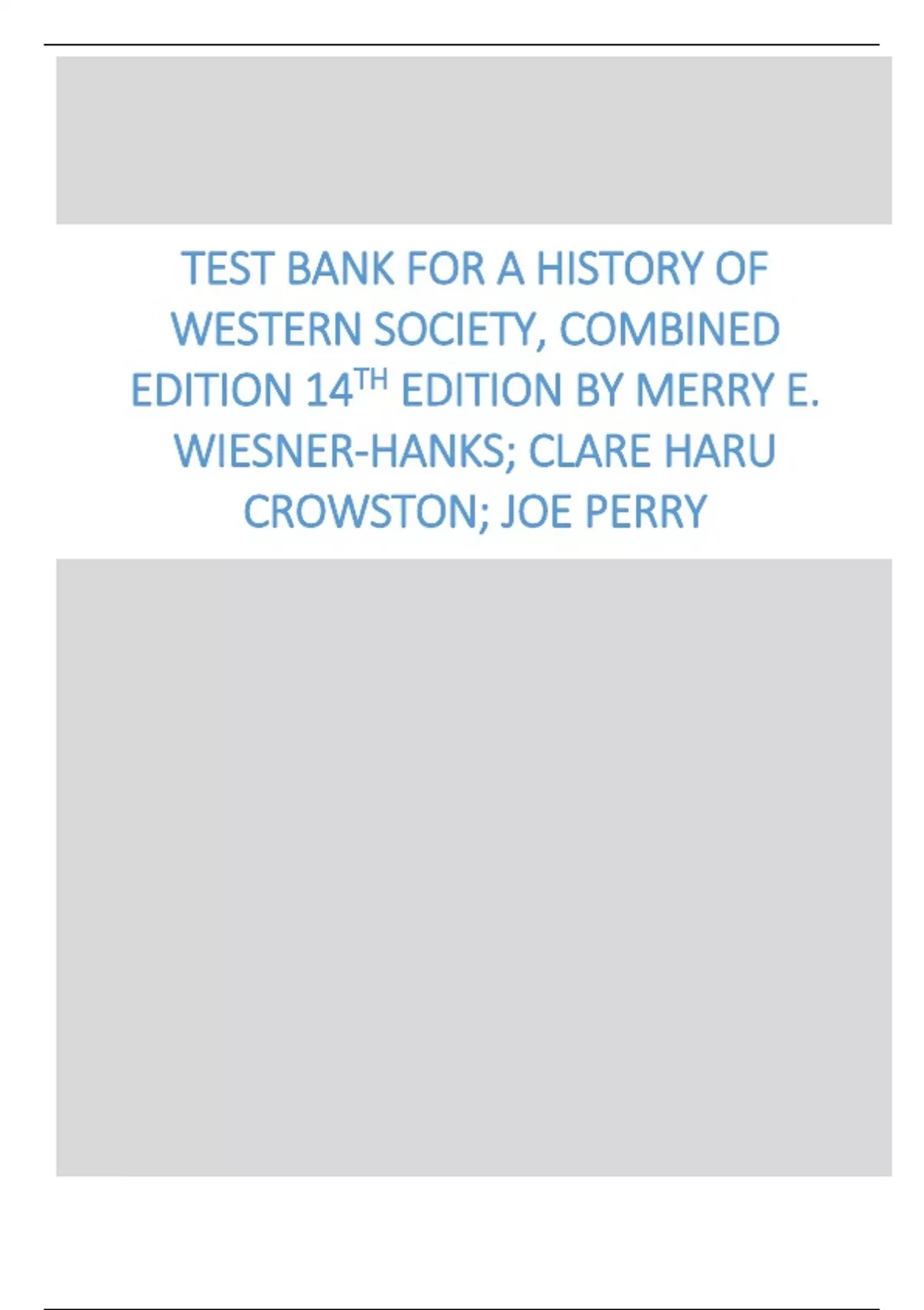 Test Bank for A History of Western Society, Combined Edition 14th Edition by Merry E. Wiesner-Hanks, Clare Haru Crowston, Joe Perry