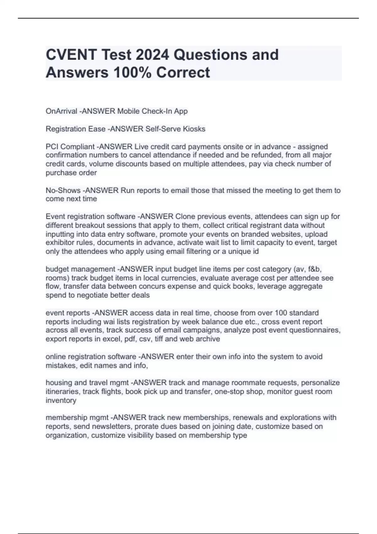 cvent test 2024 questions and answers stuvia