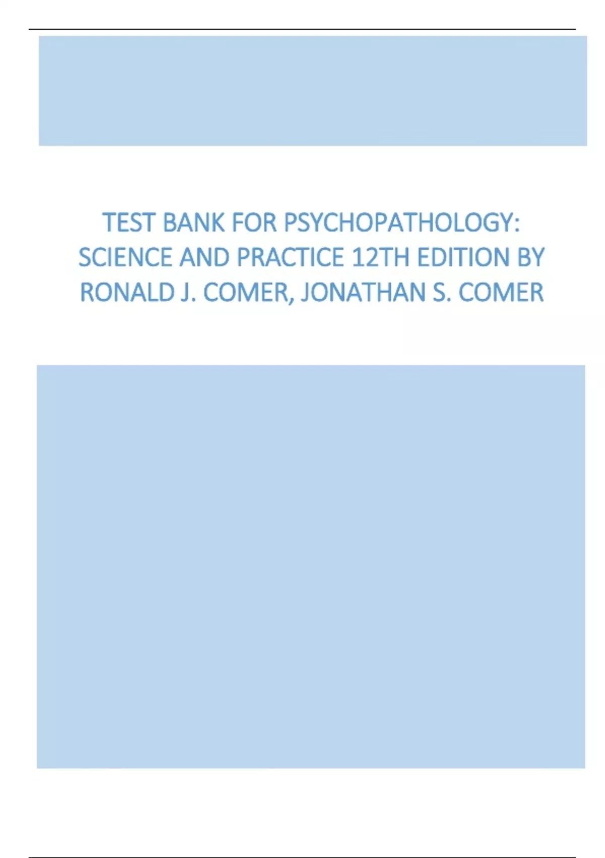 Test Bank for Psychopathology Science and Practice 12th Edition By Ronald J. Comer, Jonathan S. Comer