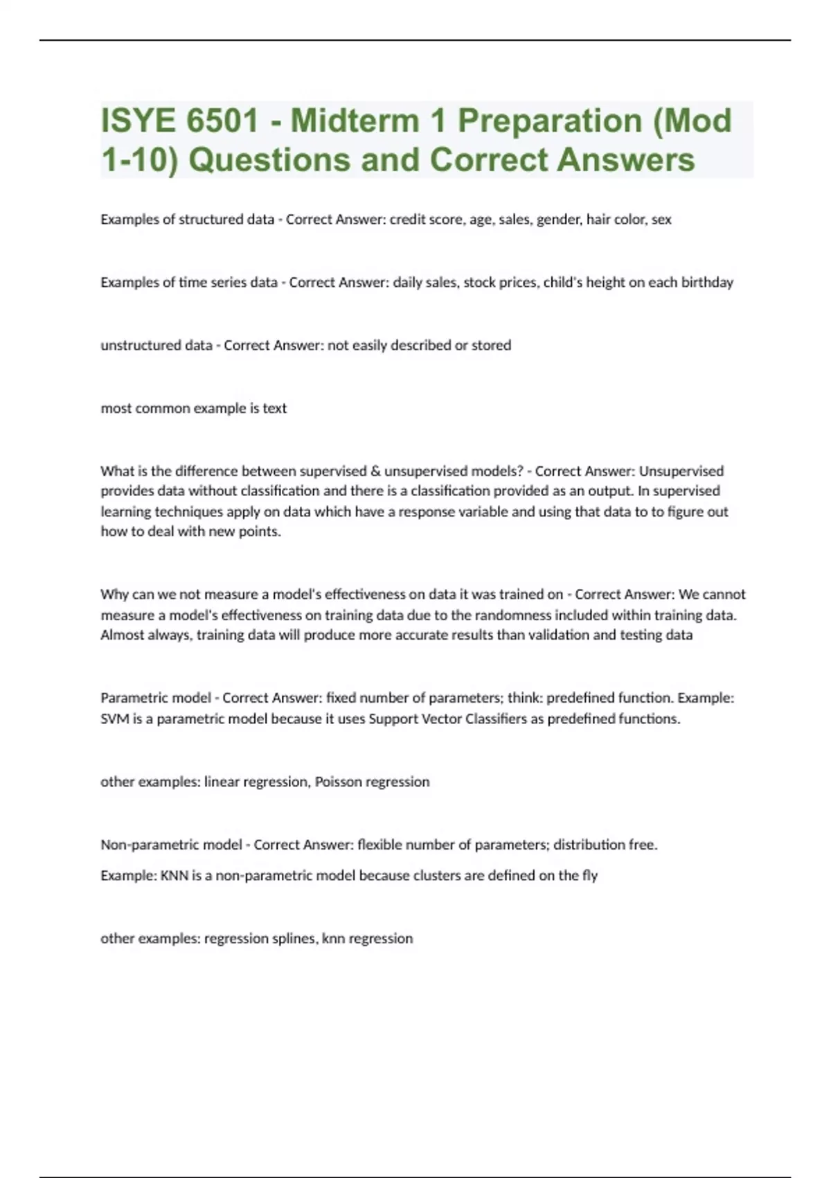 isye 6501 midterm 1 preparation mod 1 10 quest