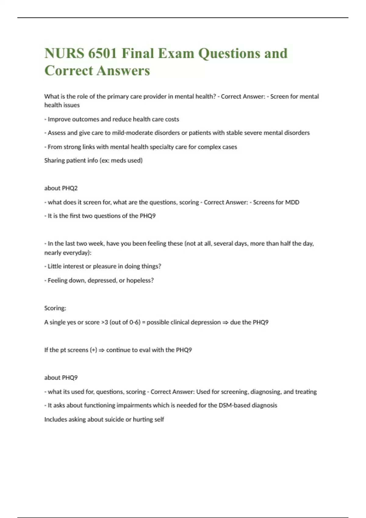 NURS 6501 Final Exam Questions and Correct Answers