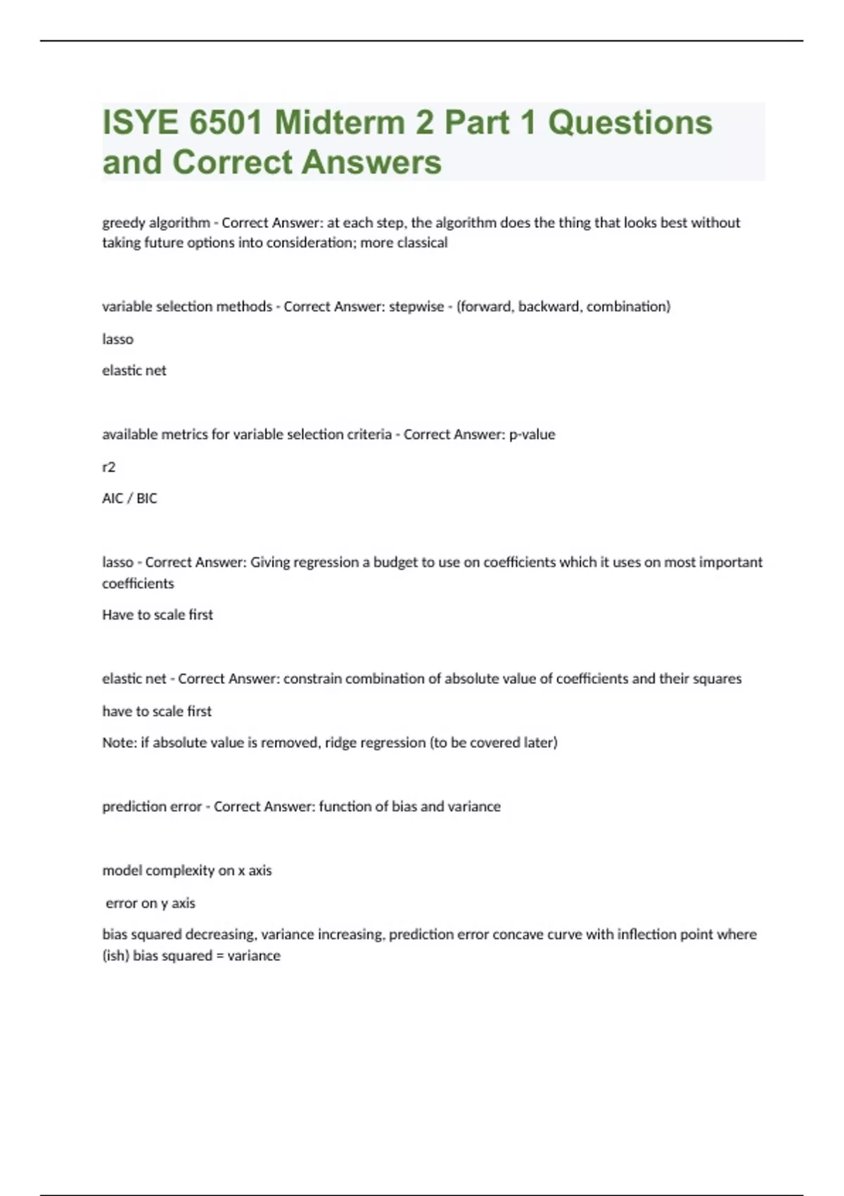 ISYE 6501 Midterm 2 Part 1 Questions and Correct Answers