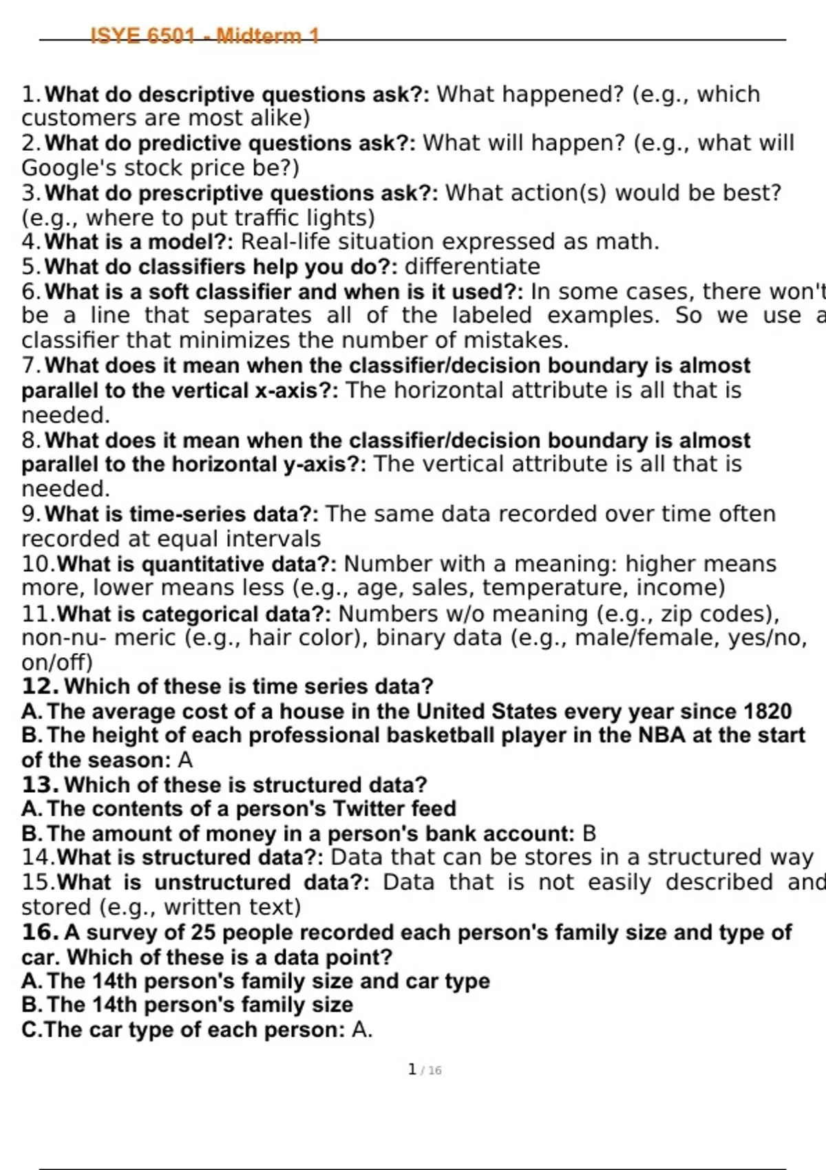 ISYE 6501 - Midterm 1 Questions with Complete Solutions