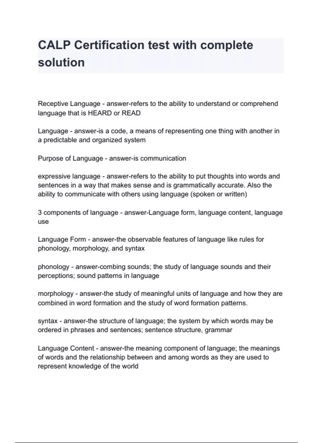 CALP Certification test with complete solution