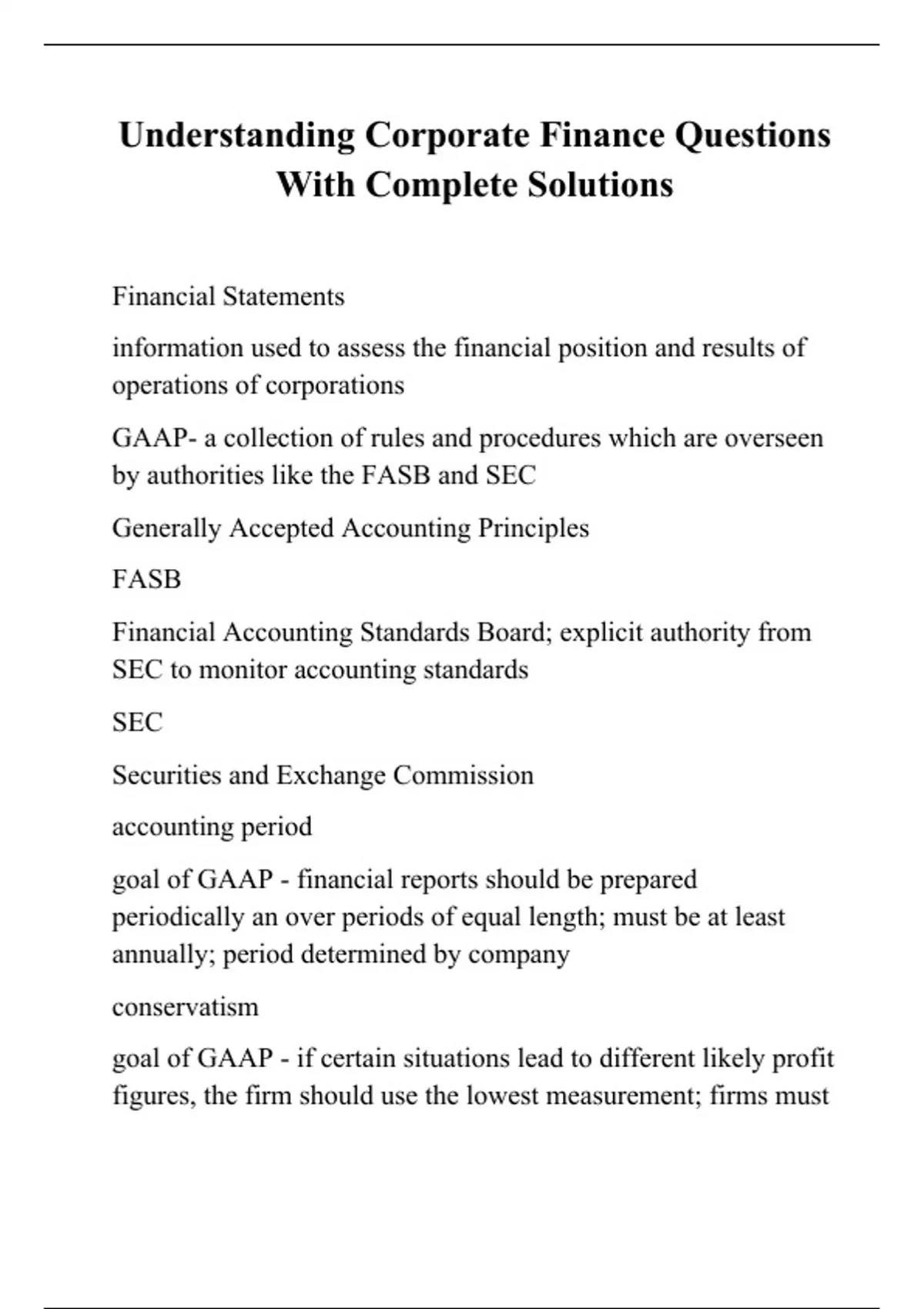 Understanding Corporate Finance Questions With Complete Solutions