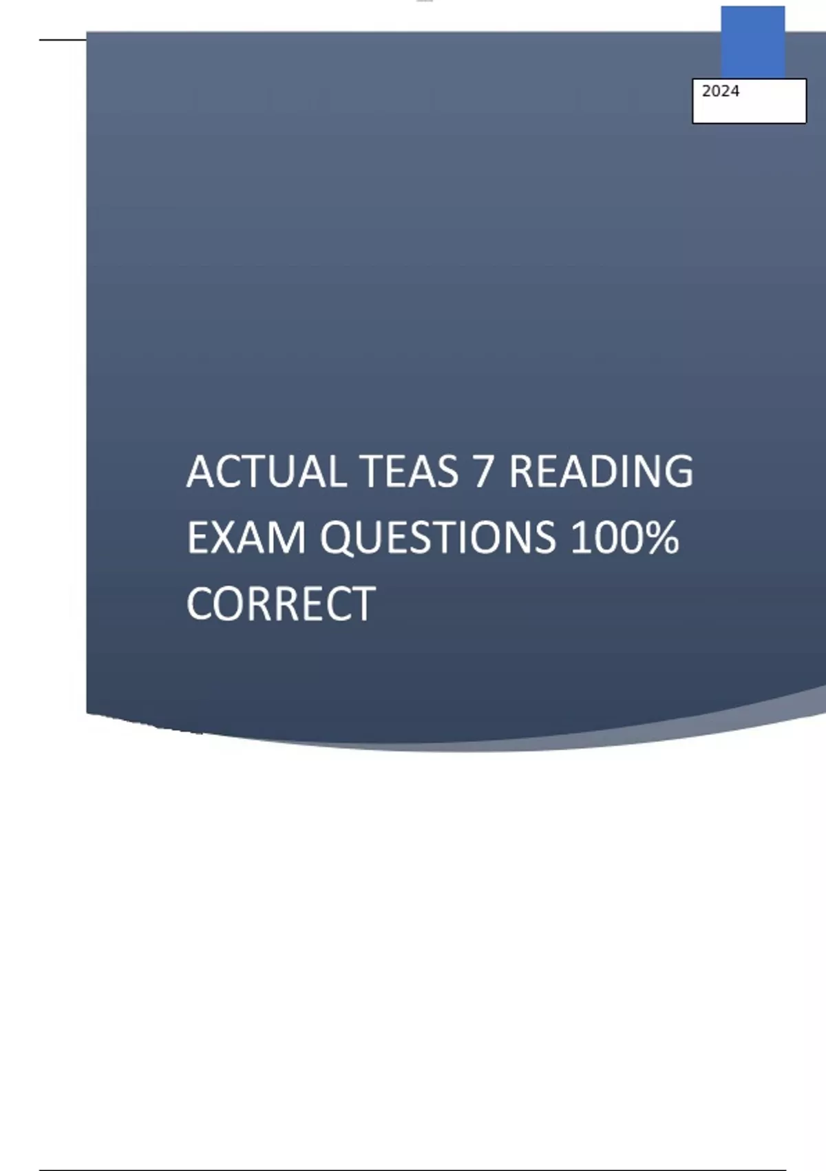 Actual TEAS 7 Reading EXAM Questions 100% Correct