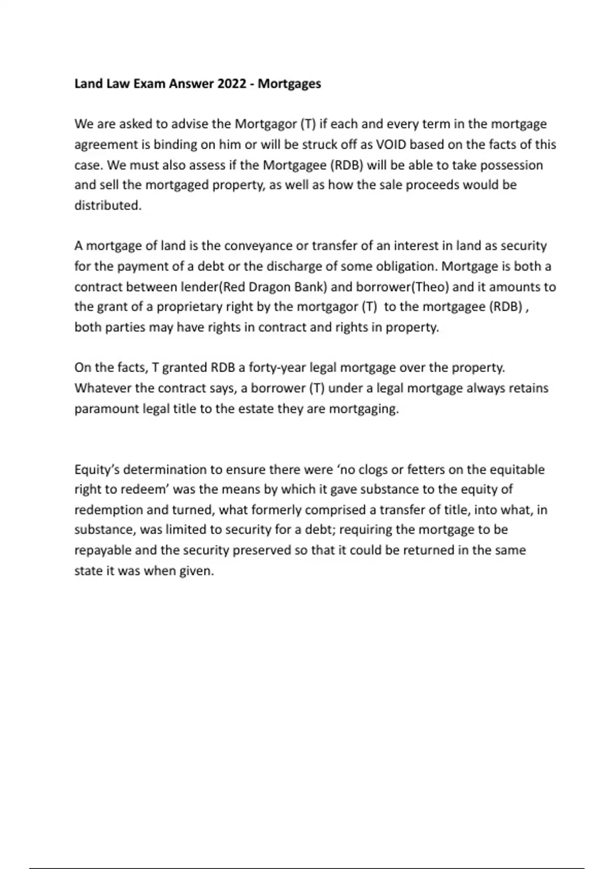 On the facts, T granted RDB a forty-year legal mortgage over the property.