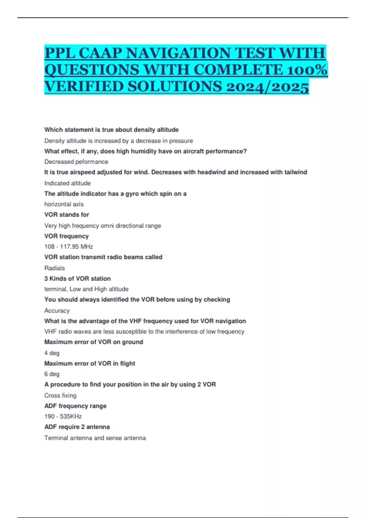 PPL CAAP NAVIGATION TEST WITH QUESTIONS WITH COMPLETE 100% VERIFIED SOLUTIONS 2024/2025