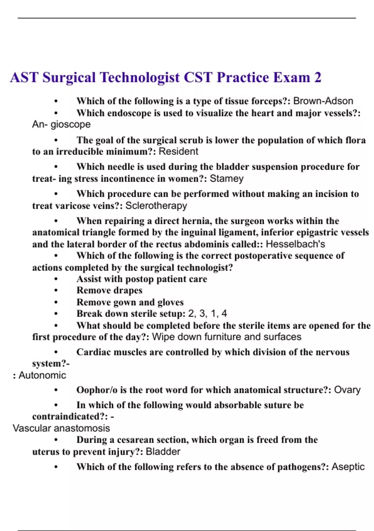 AST Surgical Technologist CST Practice Exam 2