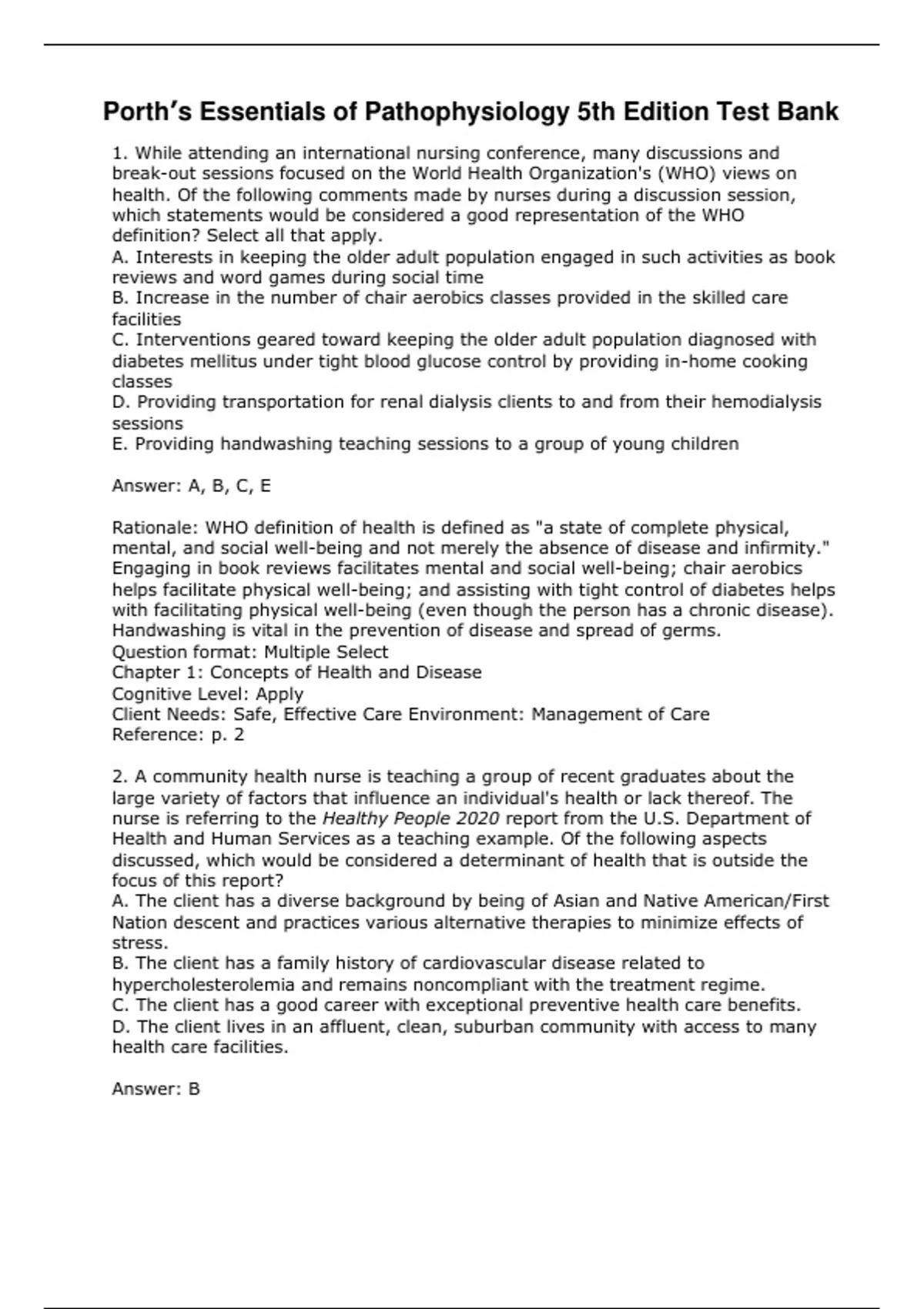 Test bank Porth's Essentials of Pathophysiology 5th Edition