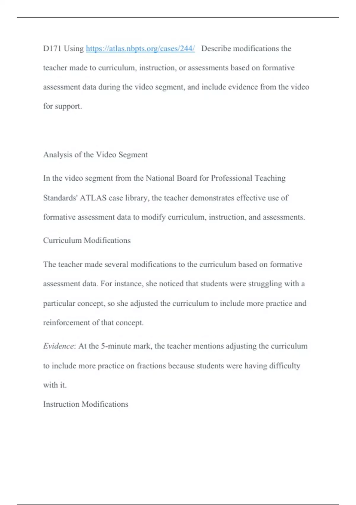 Summary D171 Using https://atlas.nbpts.org/cases/244/ Describe modifications the teacher made to